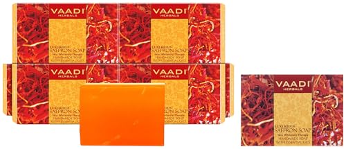 VAADI HERBALS Super Value Luxurious Saffron Skin Whitening Therapy Soap, 75g (Pack Of 6) & Luxurious Saffron Soap, Skin Whitening Therapy, 75g