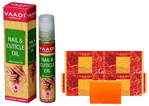HomeBeautyBodyBath & ShowerSoapsVAADI HERBALS Super Value Luxurious Saffron Skin Whitening Therapy Soap, 75g (Pack Of 6) & Nail and Cuticle Oil with Jojoba Oil, 10ml