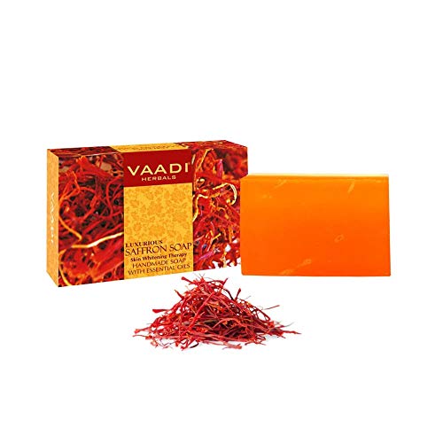 Vaadi Herbals Value Luxurious Saffron Soap Skin Whitening Therapy 3 x 75g And Vaadi Herbals Elbow Foot Knee Scrub With Almond And Walnut Scrub Soap 75g (Pack Of 6)