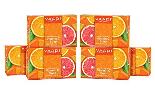 Vaadi Herbals Vitamin C Face & Body Soap | Extracts of Natural Ingredients | For Skin Brightening, Anti-Ageing Effect (75 gms X 6)