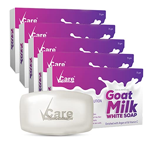 VCare Goat Milk Soap For Women & Men with Vitamin C Argan Oil for Deep Exfoliation and provides hydration | Sulfate & Paraben Free Bathing Soap Bar - 75 gms (Pack of 5)
