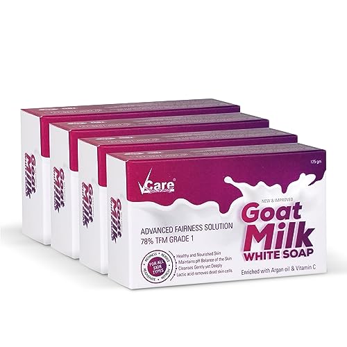VCare Goat Milk White Soap, 125 gm, (Pack of 4), Enriched with Argan Oil & Vitamin C-Best soap for skin Hydration & Nourishment