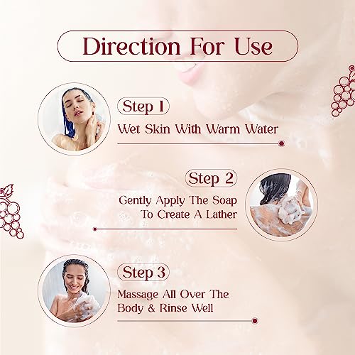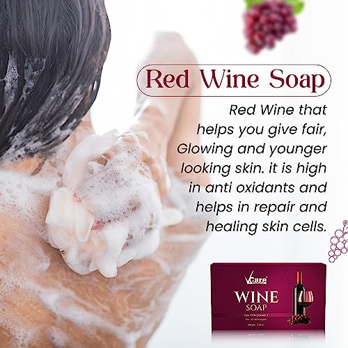 VCare Red Wine Soap for Women and Men 100gm Gentle Moisturizing Bathing Soap Bar for Body Acne & Anti-aging Suitable for All Skin Types (Pack of 3)