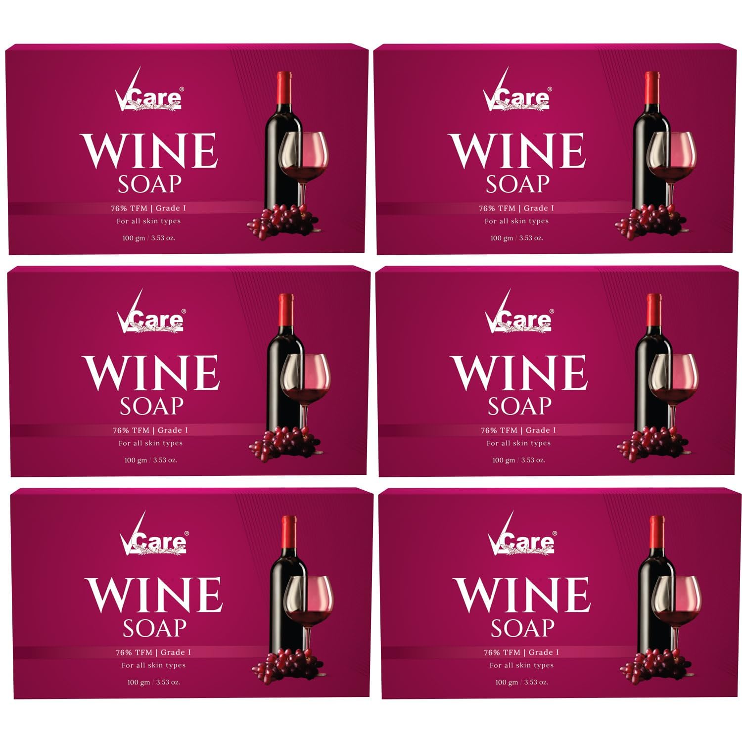 Vcare Red Wine Soap for All Skin Types - Redwine Bathing Bar Deep Cleansing, Exfoliating & Moisturizing Bathing Soaps Combo Pack - 100g (Pack of 6)
