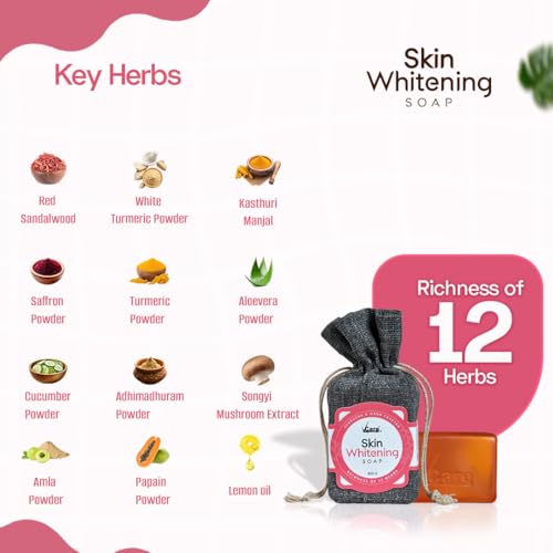 • NATURAL SKIN BRIGHTENING SOAP: VCare skin whitening soap features a powerful blend of natural ingredients including red sandalwood white turmeric powder saffron powder and turmeric powder to promote a brighter complexion.