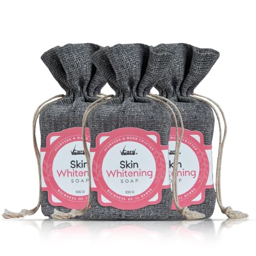 VCare Skin Whitening Soap -100 gm | Richness of 12 Herbs Ingredients with Songyi Mushroom Extract Soap bar | Exfoliates the skin impurities & improves the skin tone for both Men and Women (Pack of 3)