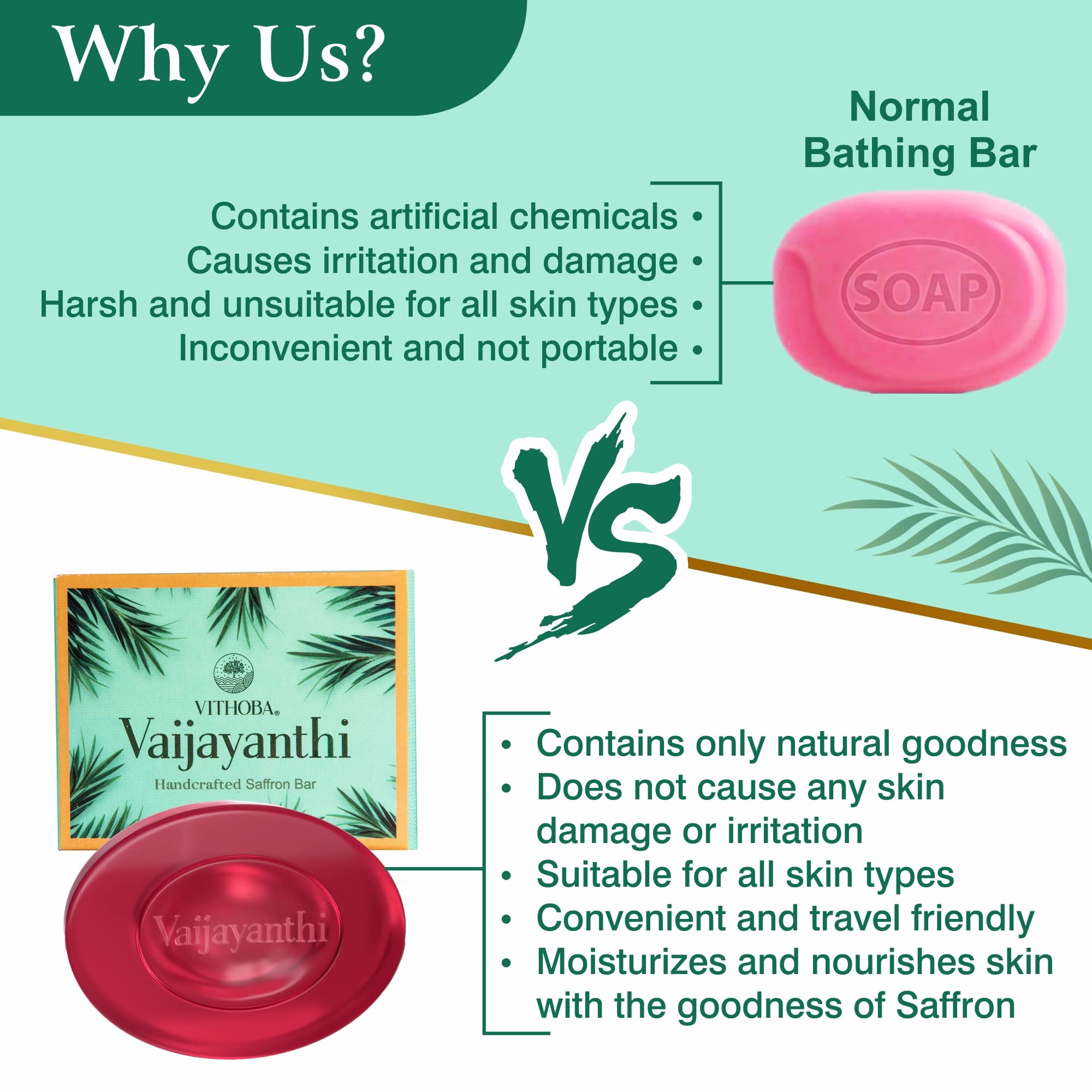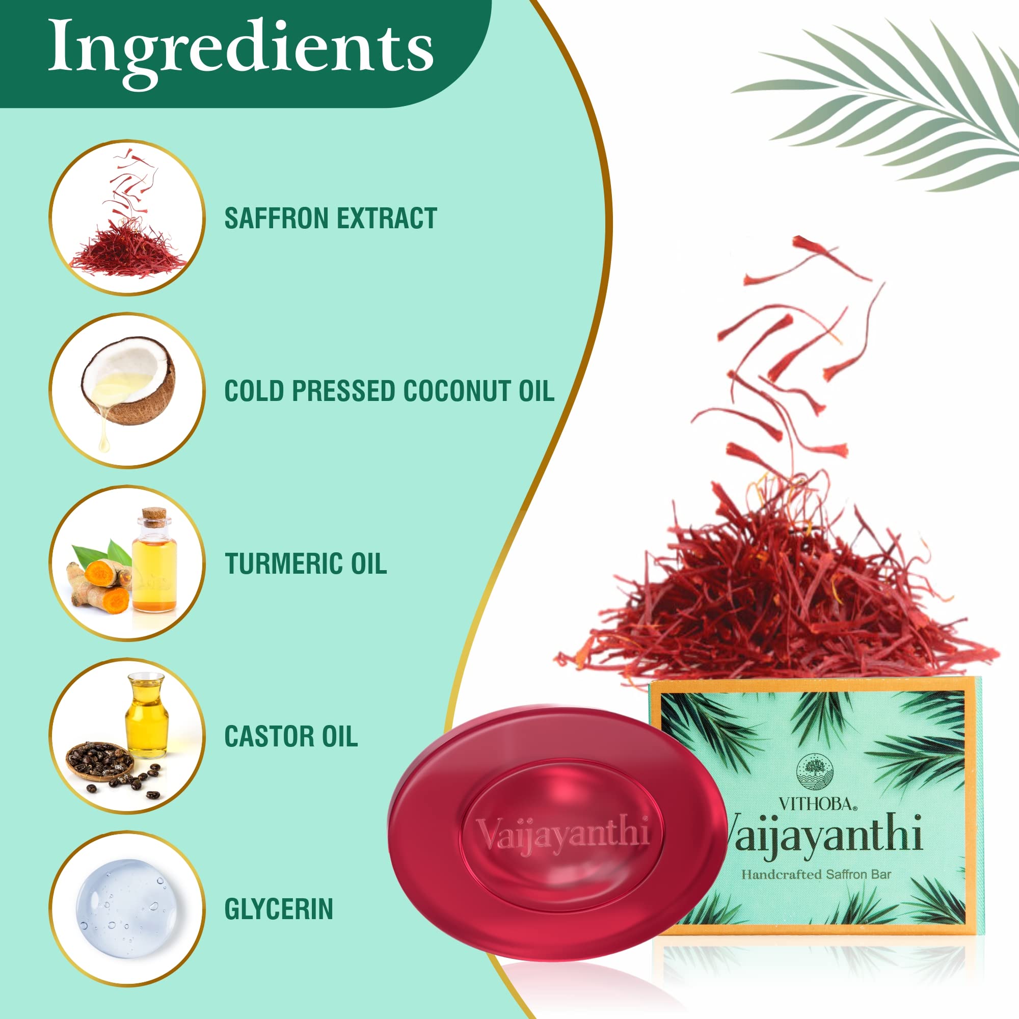 Vithoba Vaijayanthi Handcrafted Saffron Soap Bar | Real Kesar Soap For Blemishfree Soft & Natural Glow | With Goodness Of Turmeric Oil Glycerin & Coconut Oil | 75g |