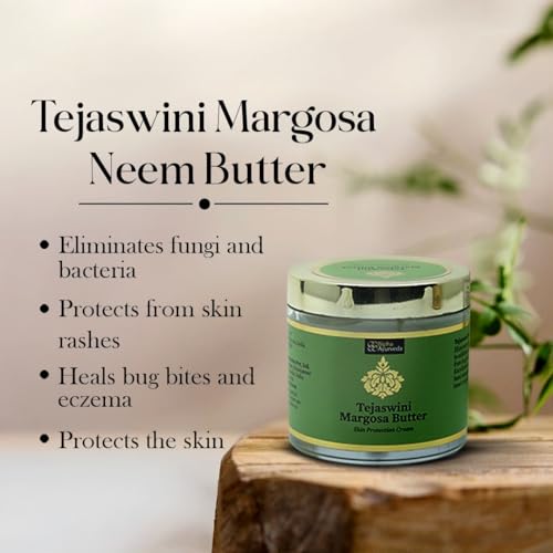 Tejaswini Margoza Butter is a neem-oil-based cream rich in antioxidants fatty acids and antimicrobial compounds that helps for scar-free even-toned skin. The skin healing cream balances sebum production helps stimulate collagen production and heals post-acne scars.