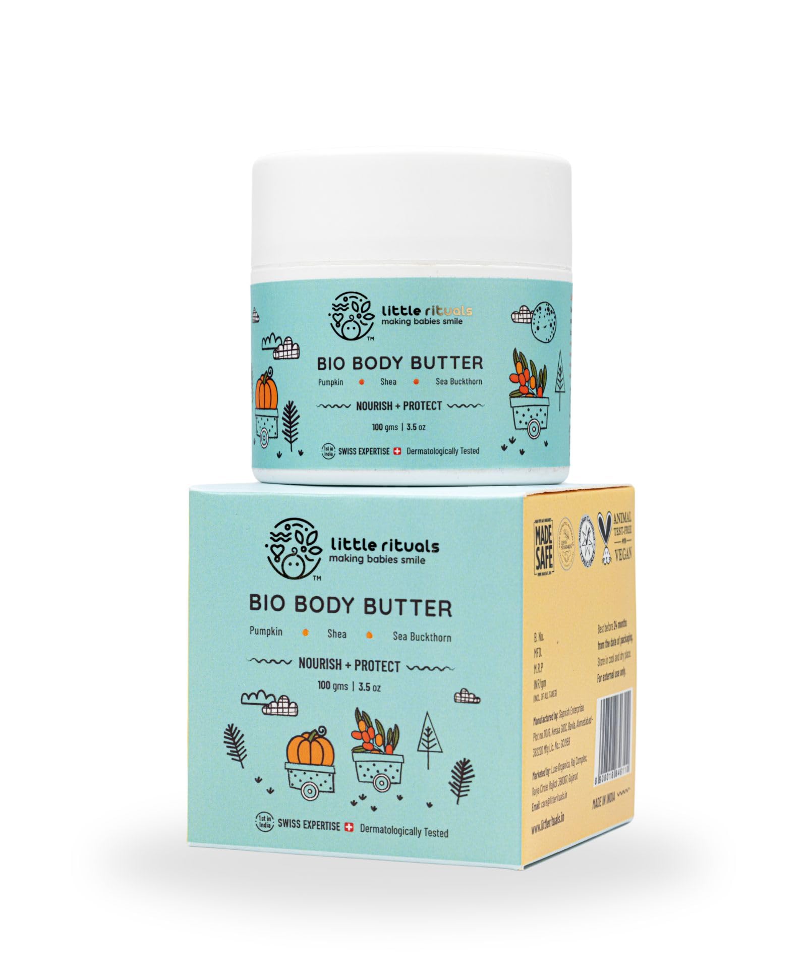 Little Rituals Baby BIO BODY BUTTER - NOURISH+ PROTECT Formulated with best plant botanical -PUMPKIN & SHEA BUTTER, SEABUCKTHORN OIL. Natural, Organic, Dermat tested, SWISS Technology (100 gm)