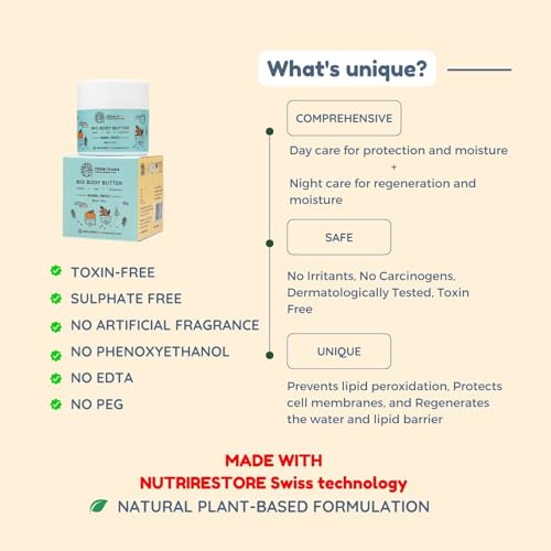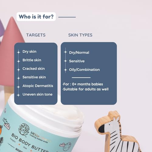 RICH FORMULATION: Better than baby moisturiser and baby body lotion. Baby body butter has a rich texture and thus a small amount gives excellent results. Shift from baby moisturizing cream to butter!
