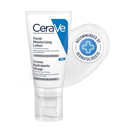 CeraVe PM Facial Moisturizing Lotion For Normal To Dry Skin (52ml) - Formulated With 3 Essential Ceramides, Niacinamide And Hyaluronic Acid | Ultra Lightweight Night Cream