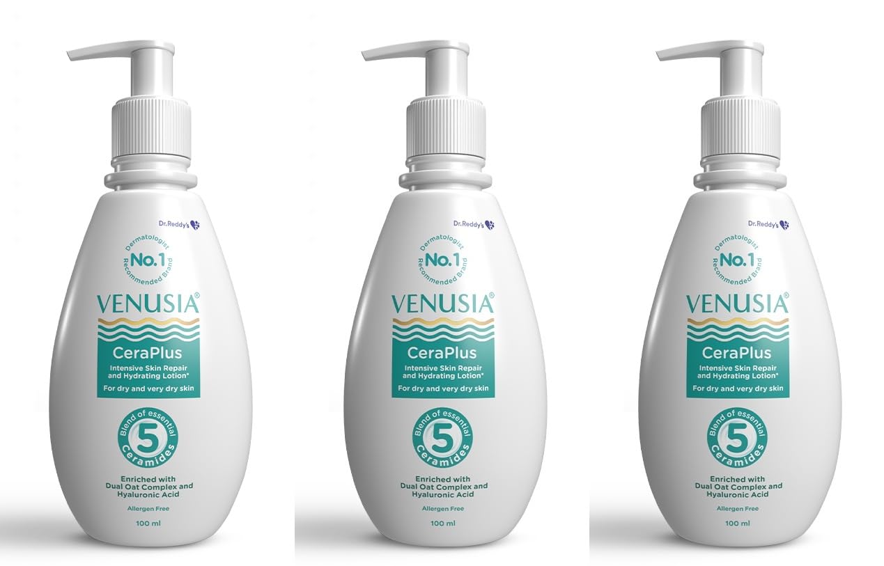 Dr. Reddy's Venusia CeraPlus Moisturizing Lotion For Dry Skin - Formulated With 5 Essential Ceramides Oat Complex Hyaluronic Acid | Hypoallergenic and Fragrance-Free | 100 ml (Pack of 3)