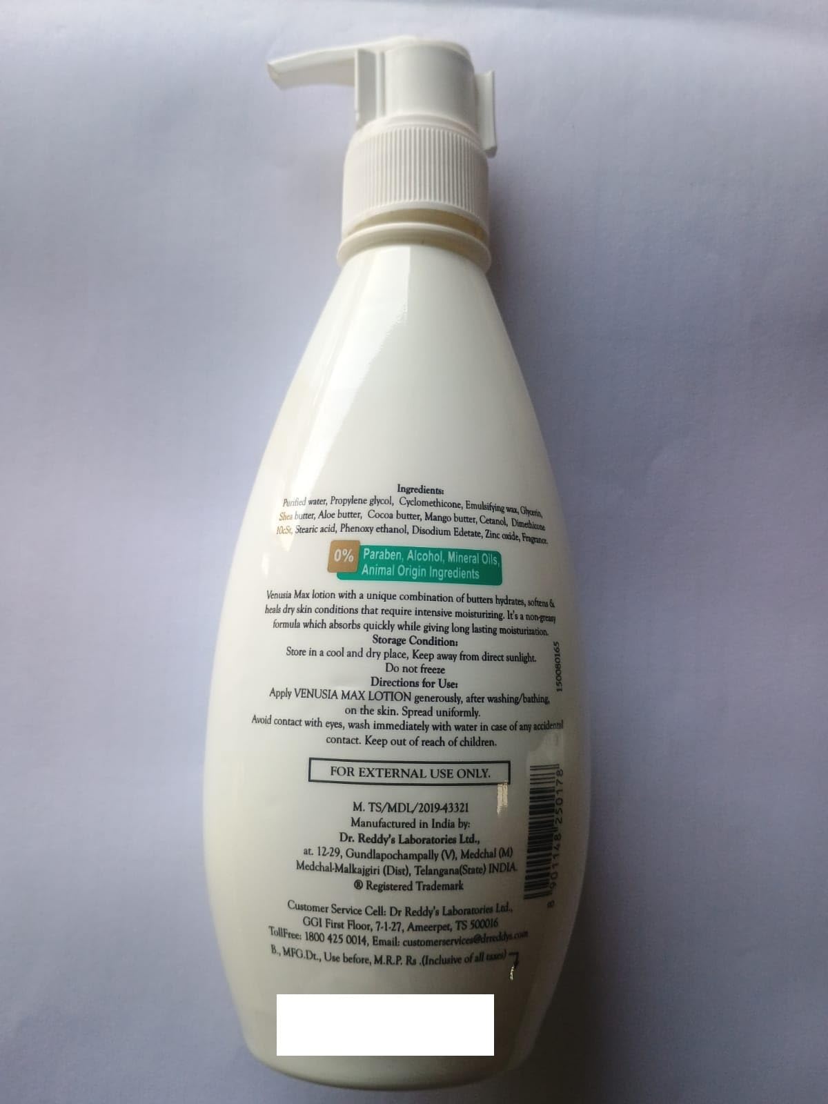 Dr. Reddy's Venusia Max Intensive Moisturizing Lotion | Dermatologist Recommended | Clinically Proven Long-Lasting Moisturization | For Normal to Very Dry Skin | Cocoa Butter Shea Butter Mango Butter and Aloe Butter | 300g (Pack of 2)