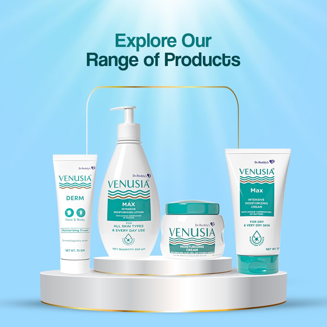 Dr. Reddy's Venusia Moisturizing Cream for Dry Skin : Moisturizer for Face : Aloe Vera Squalane & Vitamin E : Dermatologist-Recommended Moisturizer for Daily Use : Non-Comedogenic : 100 g