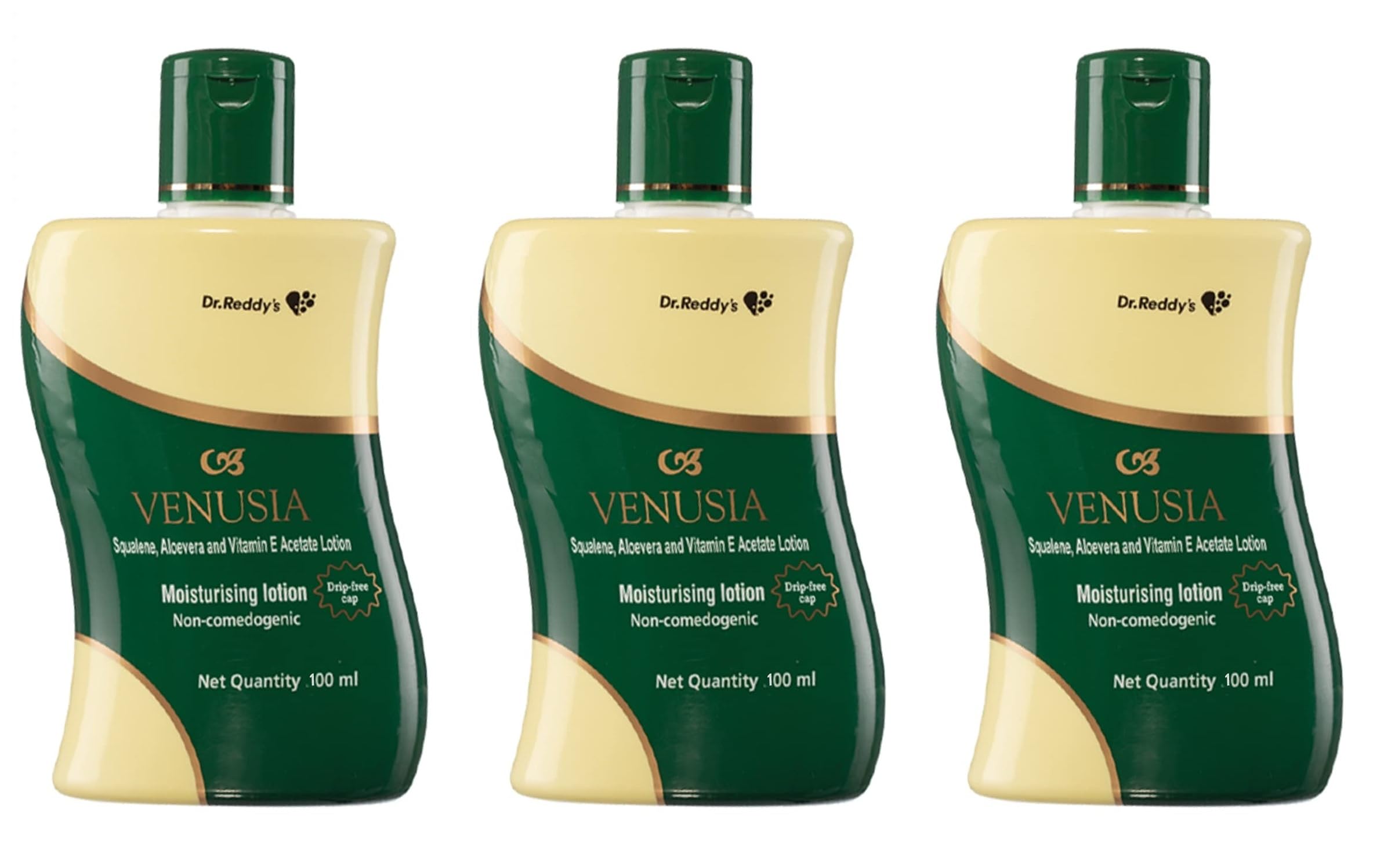 Dr. Reddy's Venusia Moisturizing Lotion | Soft and Hydrated Skin | For Dry to Very Dry Skin | Vitamin E Squalene and Aloe Vera | 100 ml (Pack of 3)