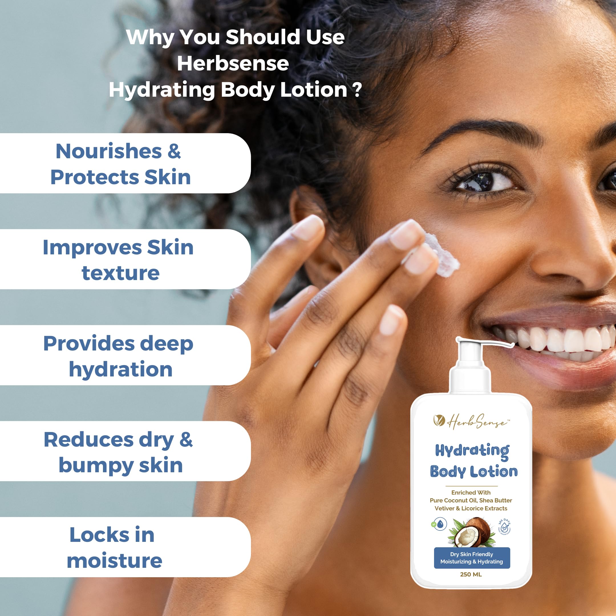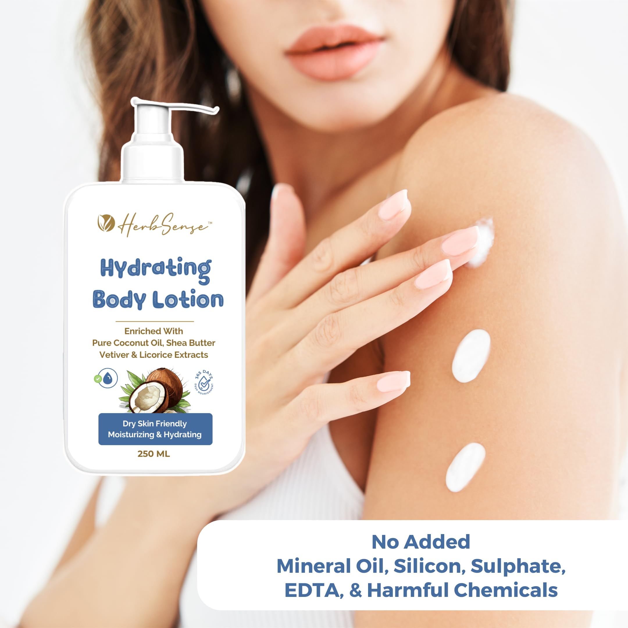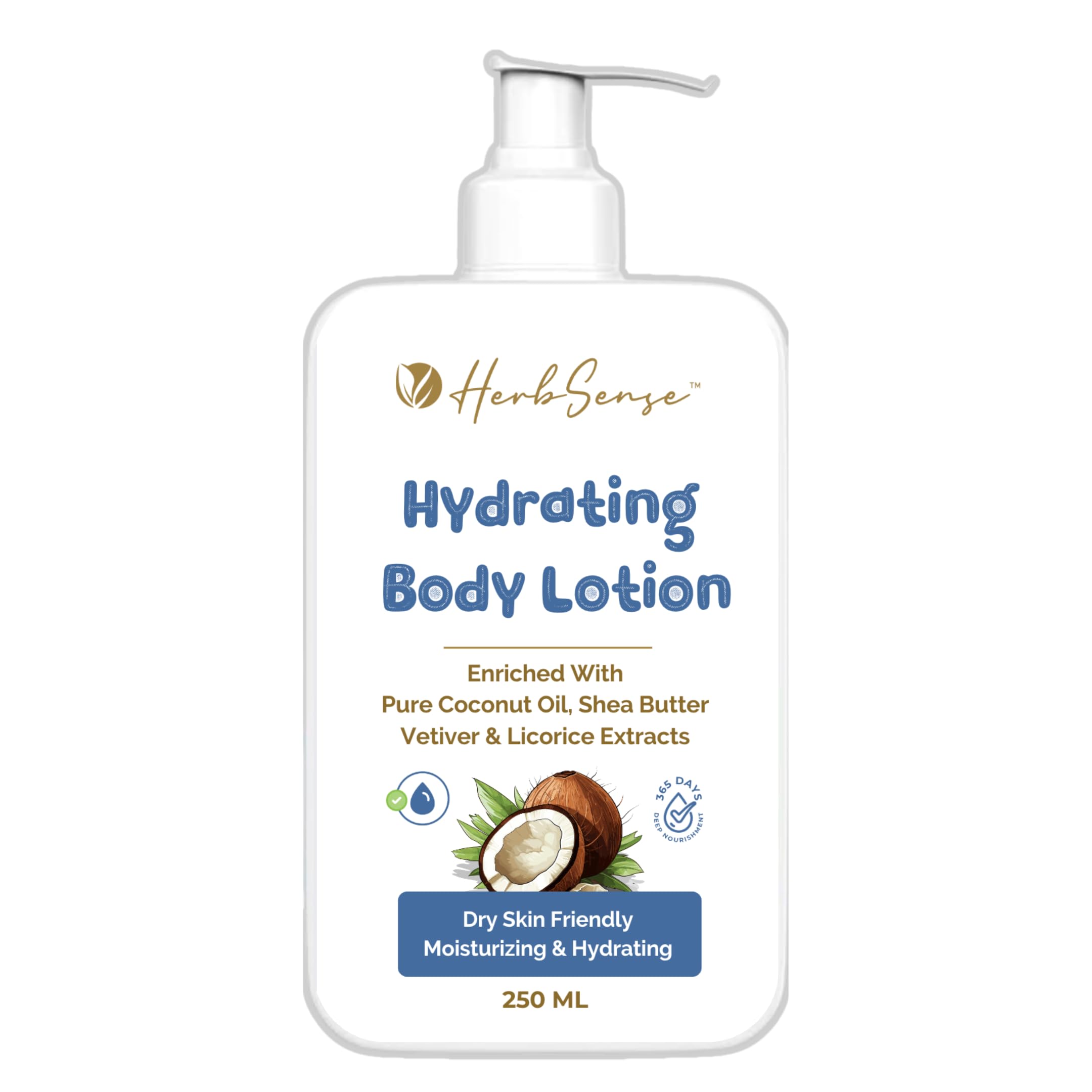 HerbSense Hydrating Body Lotion For Deep Moisturization 250ml Enriched with Coconut Oil Shea Butter Vetiver & Licorice Extracts Dry Skin Friendly