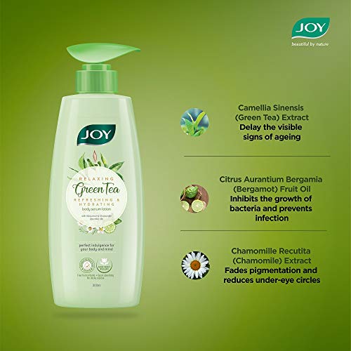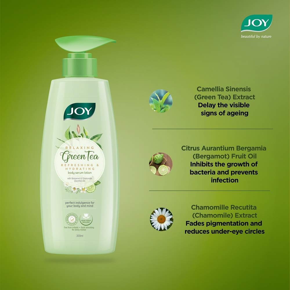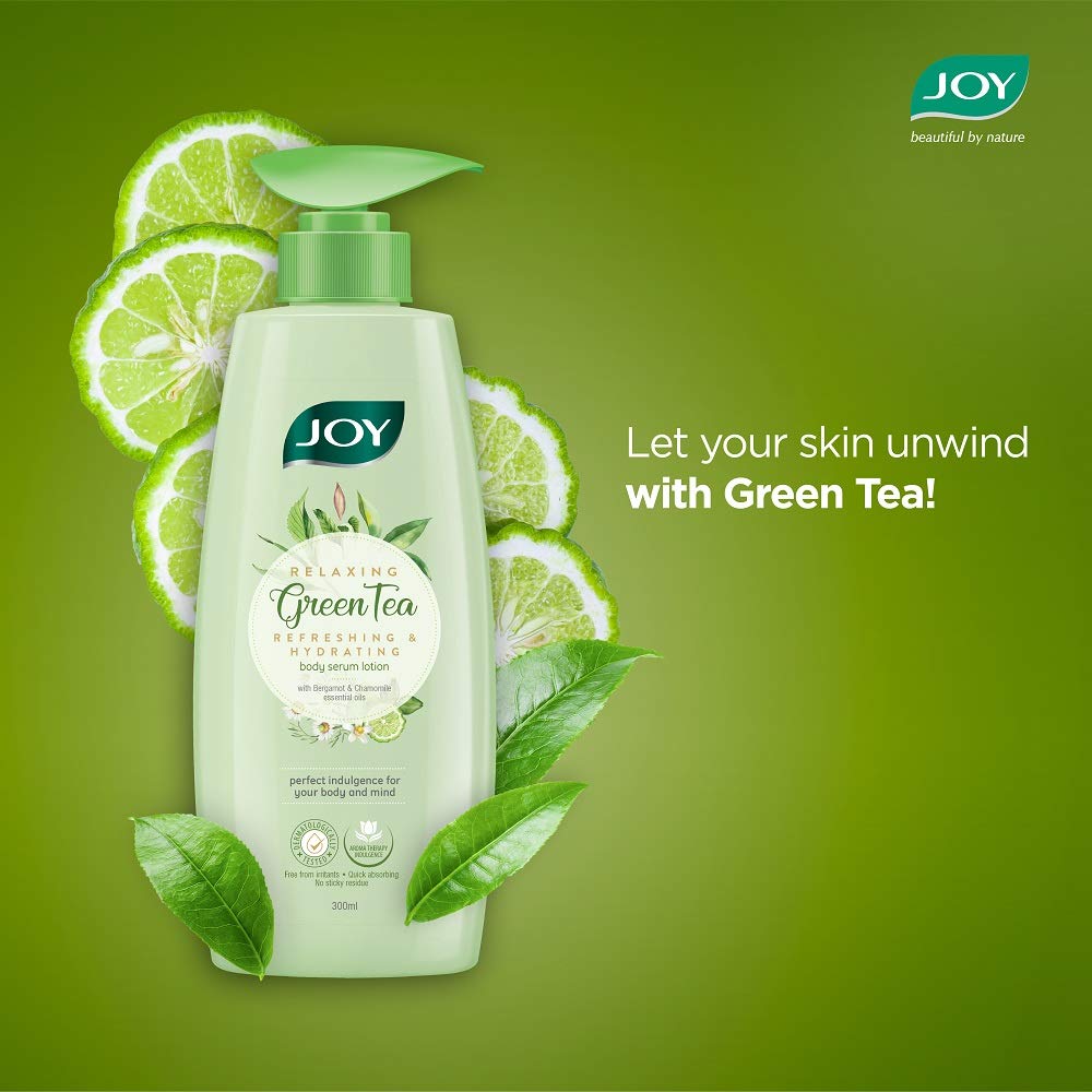 Joy Relaxing Green Tea Body Serum Lotion | Refreshing & Hydrating With Bergamot & Chamomile Essential Oil | Quick Absorbing & Skin Glowing | Body Serum Lotion for All Skin Types | 300 ml