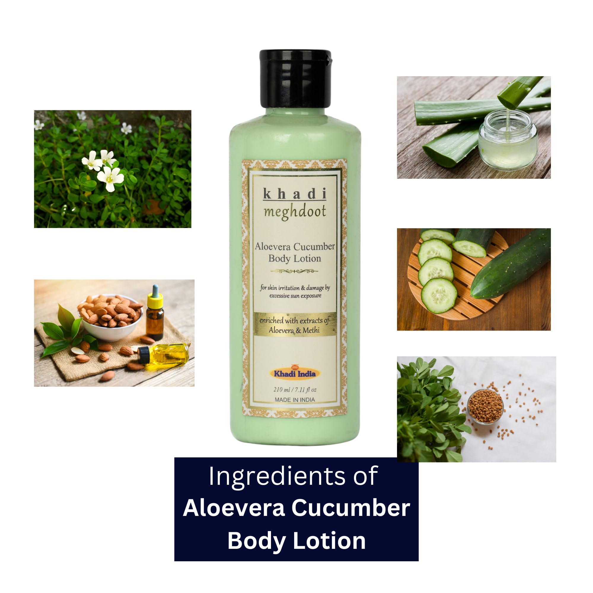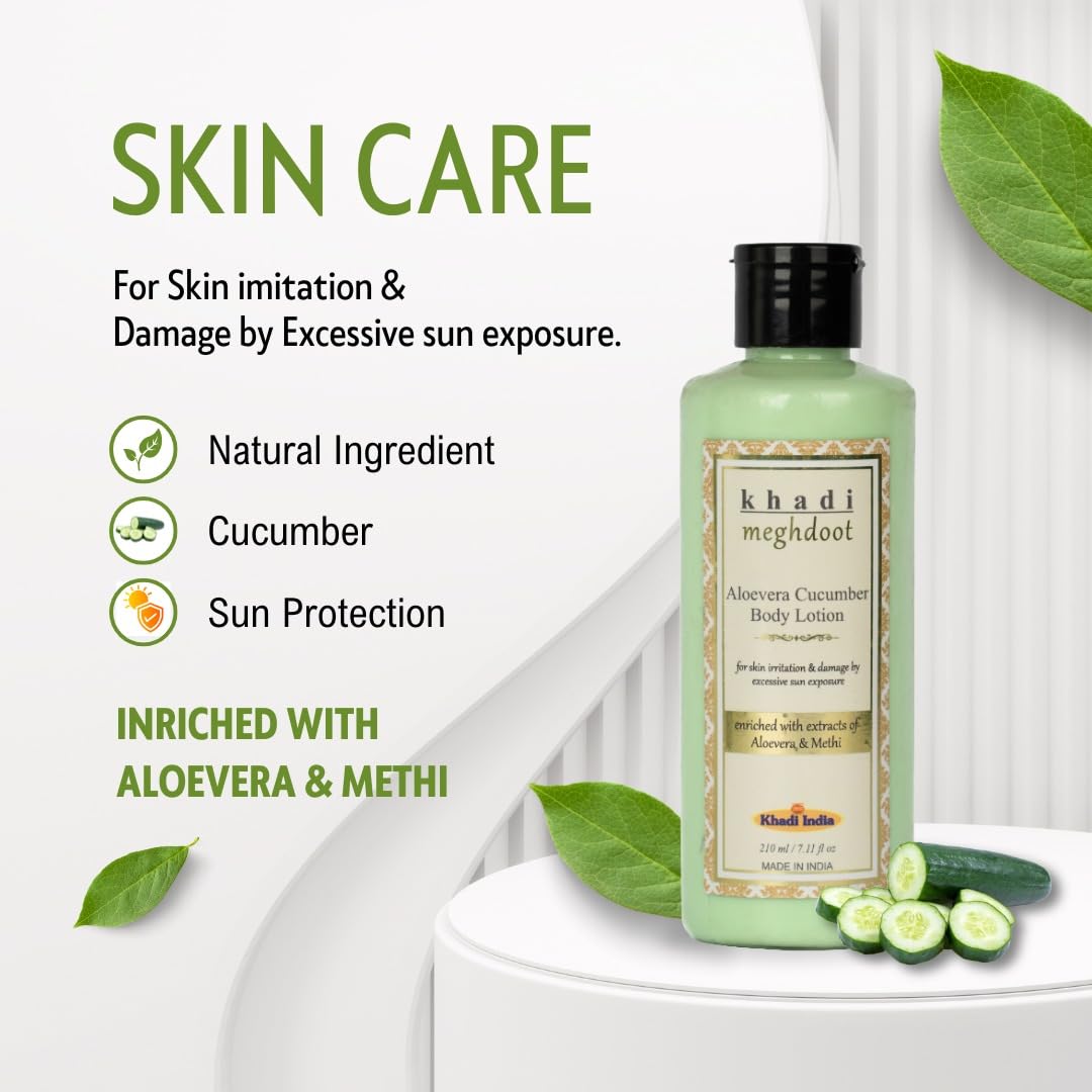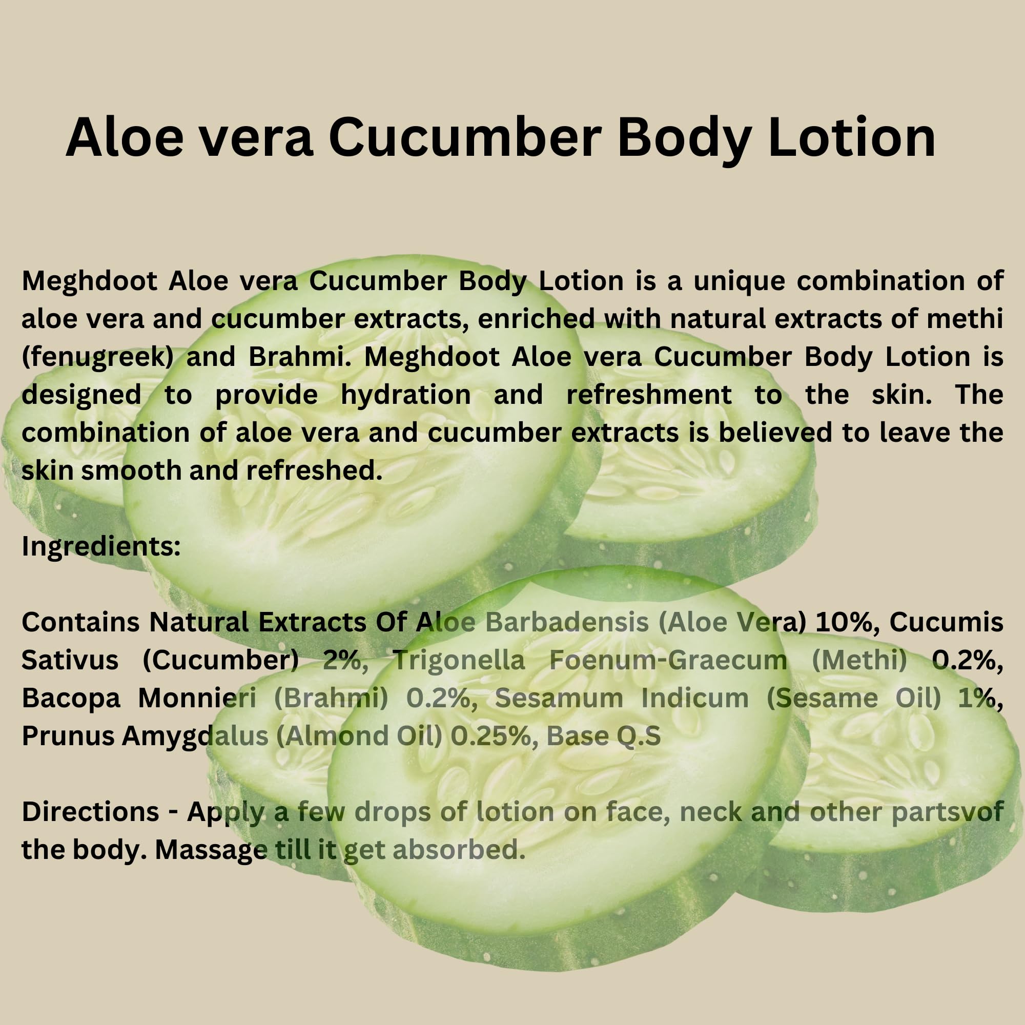 Soothing & Hydrating Formula: Meghdoot Ayurvedic Aloe Vera Cucumber Body Lotion combines the cooling properties of Aloe Vera with the refreshing benefits of Cucumber to deeply hydrate and soothe your skin. This lightweight lotion absorbs quickly providing