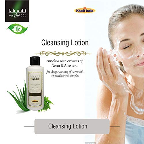 Khadi Meghdoot Herbal Cleansing Lotion with Aloe Vera and Natural Extracts for Deep Cleansing Dirt Removal and Clear Skin Suitable for All Skin Types Men and Women 210ml (Pack of 1)