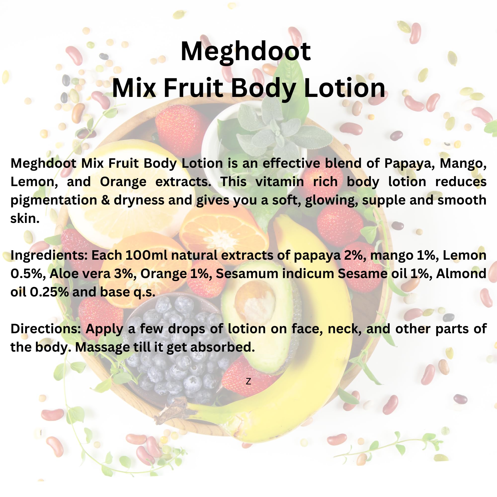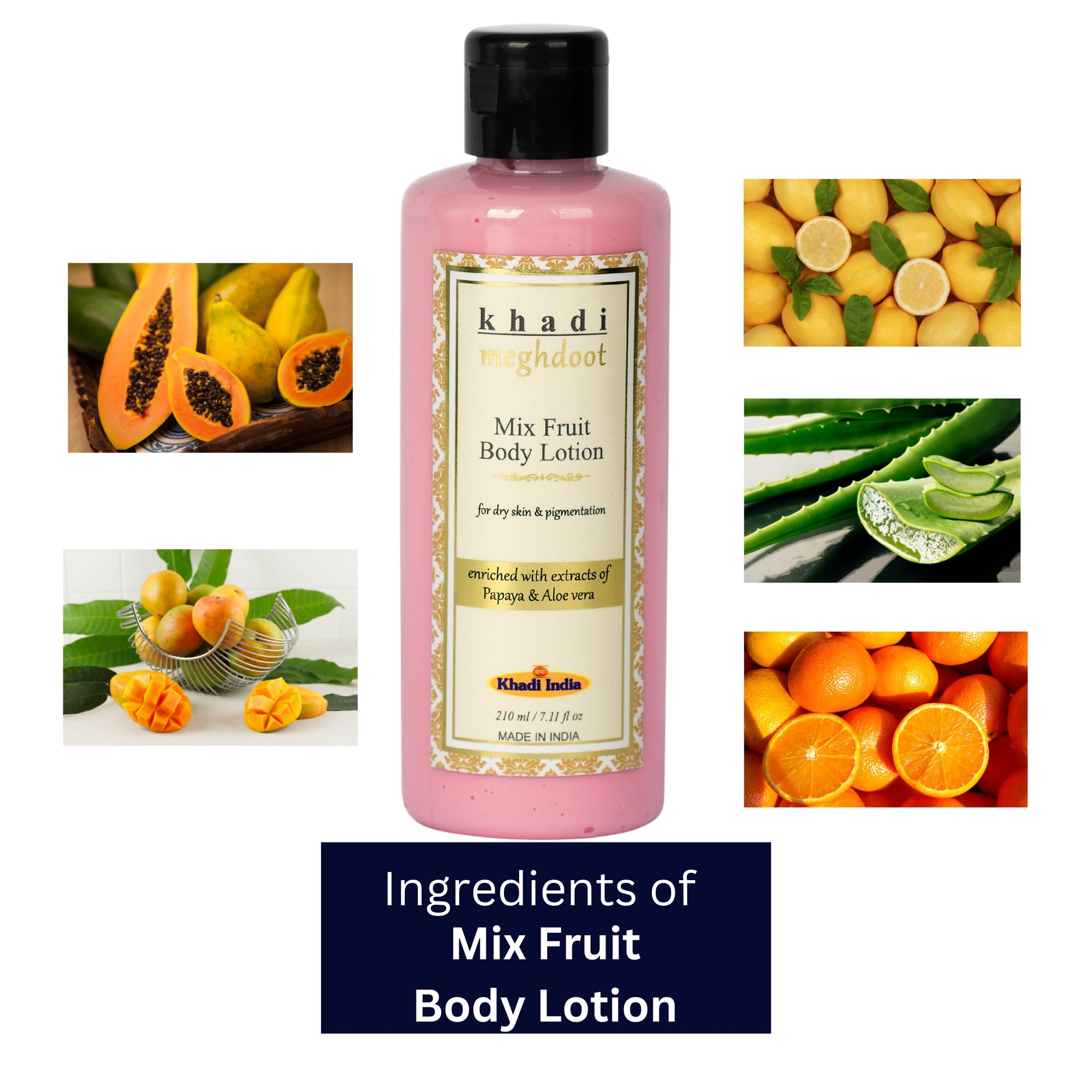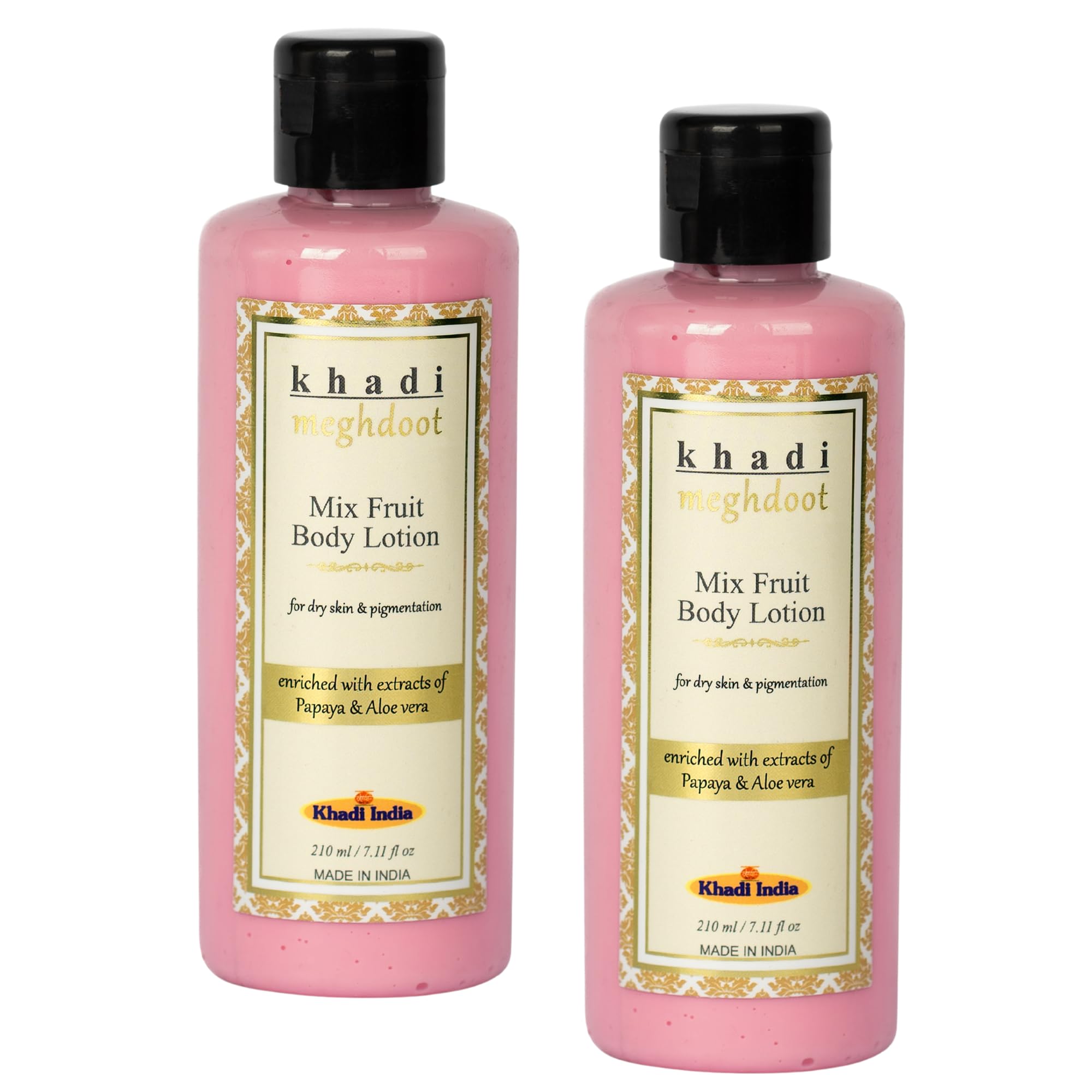 Khadi Meghdoot Mix Fruits Intense Hydrating Body Lotion Enriched With Extracts of Papaya and Aloe Vera for Pigmentation and Dry Skin Soft and Glowing Skin 210ml Each Pack of 2