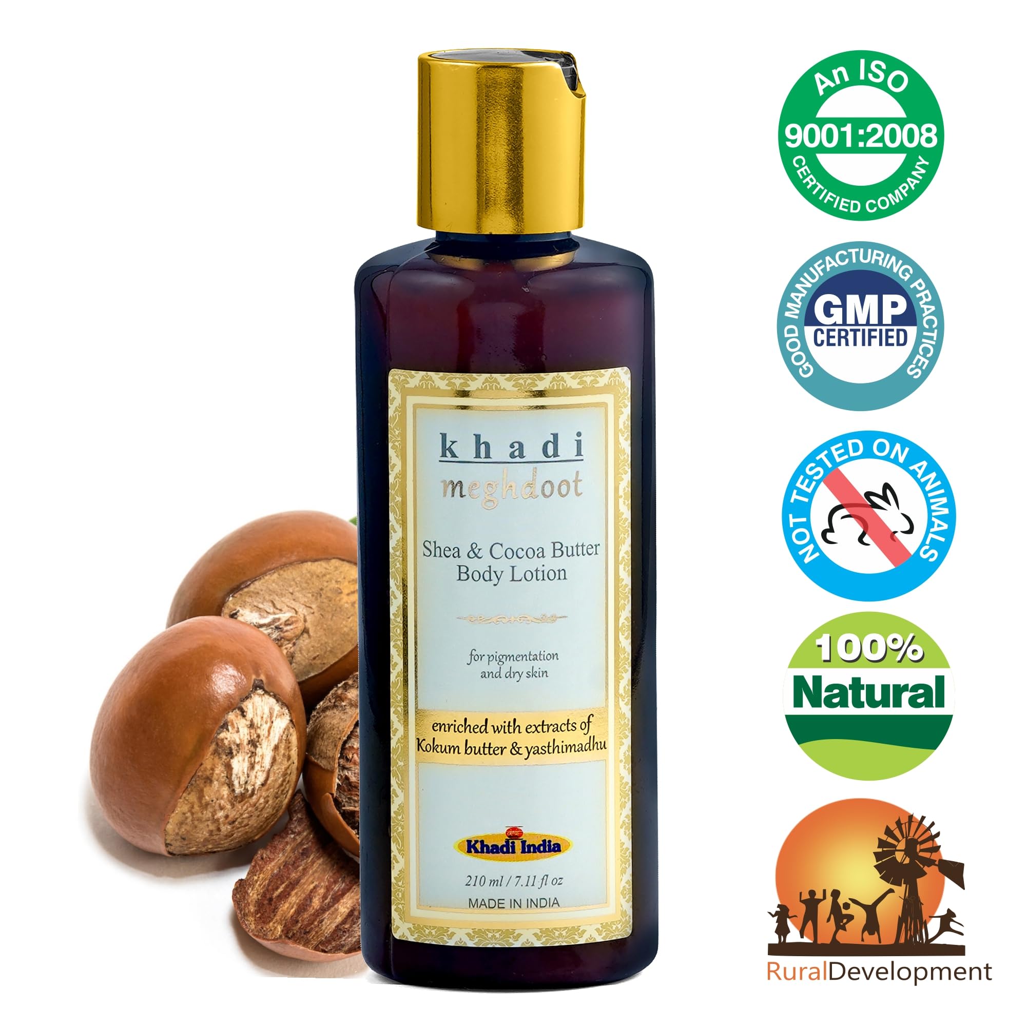 Khadi Meghdoot Shea & Cocoa Butter Intense Hydrating Body Lotion Winter Cream for Men and Women Enriched With Extracts of Kokum Butter and Yasthimadhu for Pigmentation and Dry Skin 210ml Pack of 1