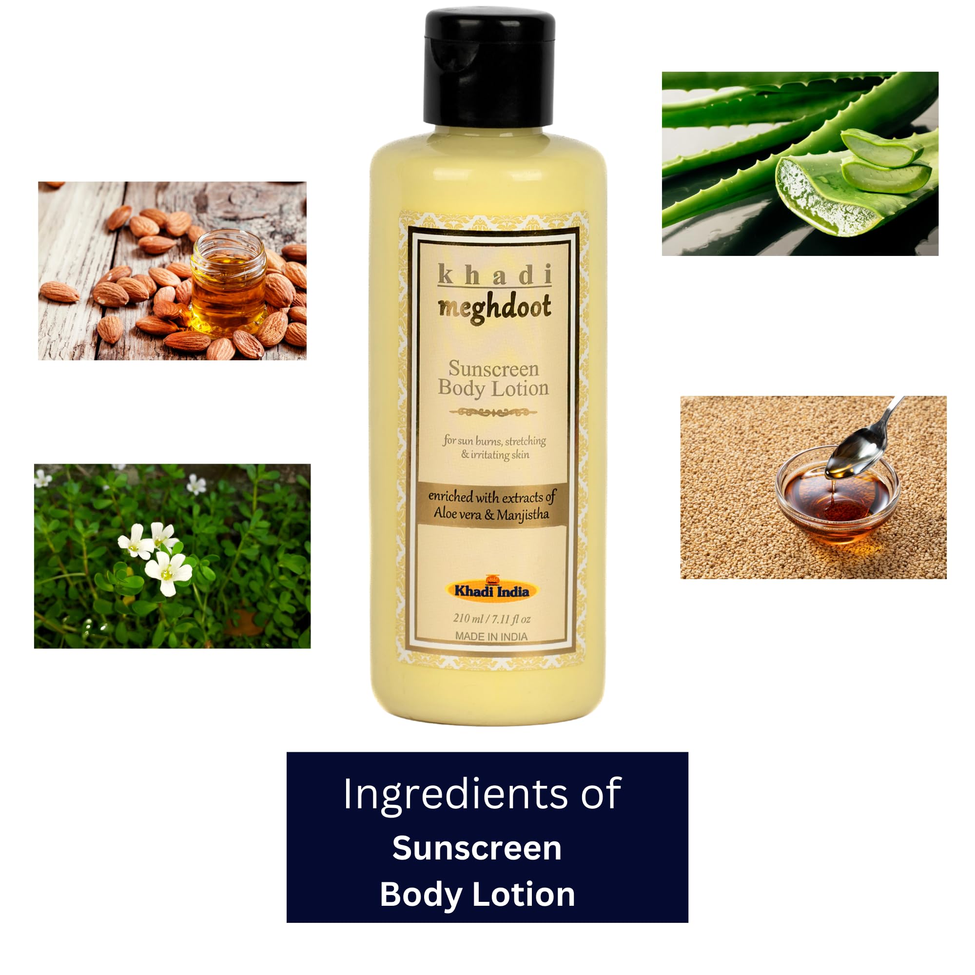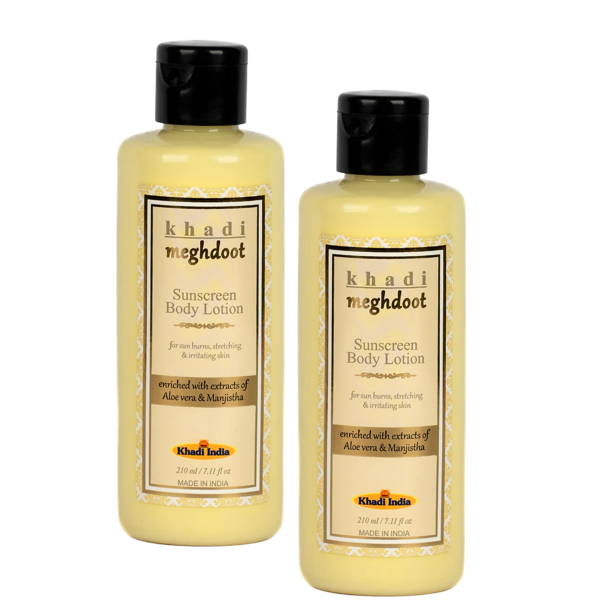 Khadi Meghdoot Sunscreen Body Lotion Intense Hydration with Sunburn Protection Enriched With Extracts of Aloe vera & Manjistha for Pigmentation and Dry Skin Soft and Glowing Skin 210ml (Pack of 2)