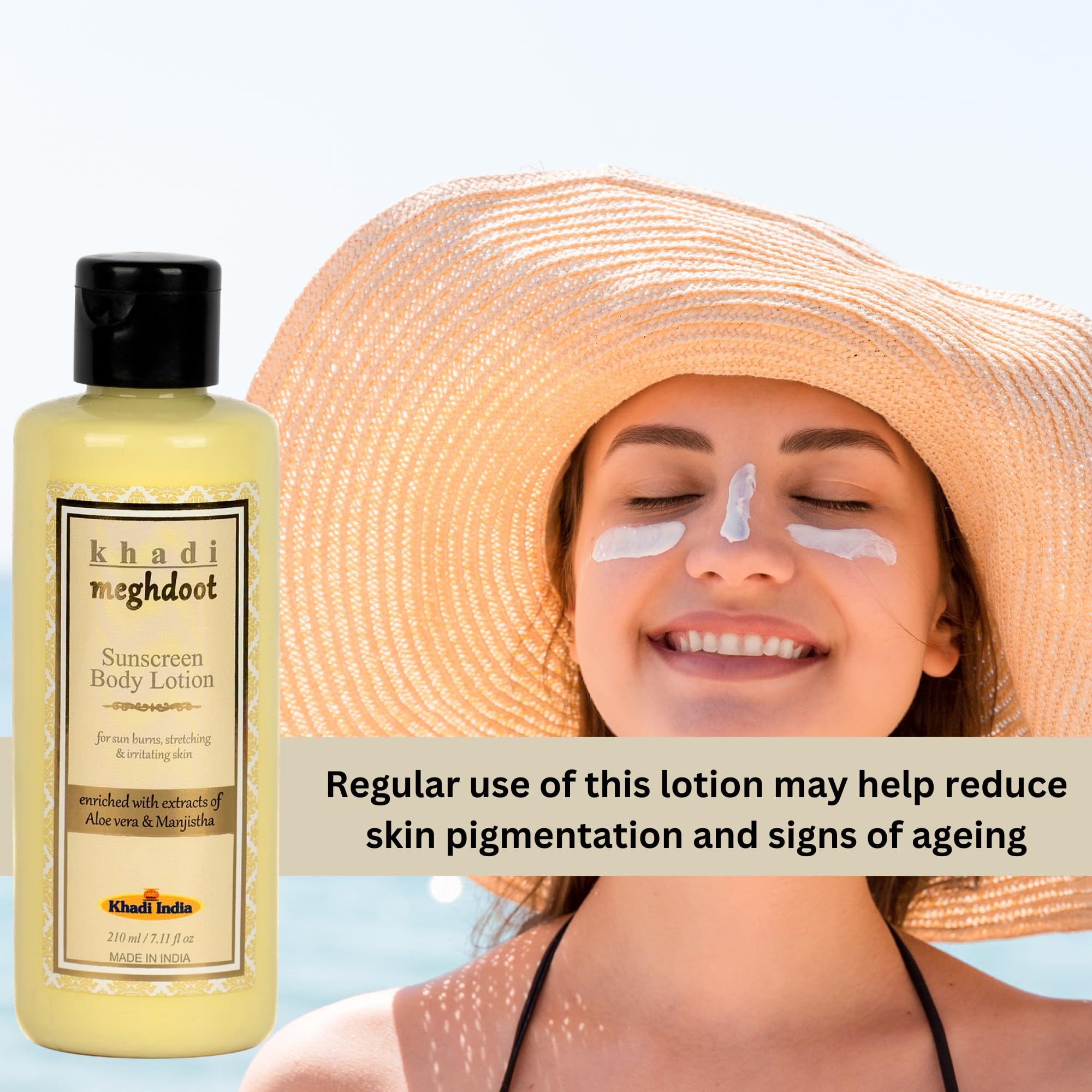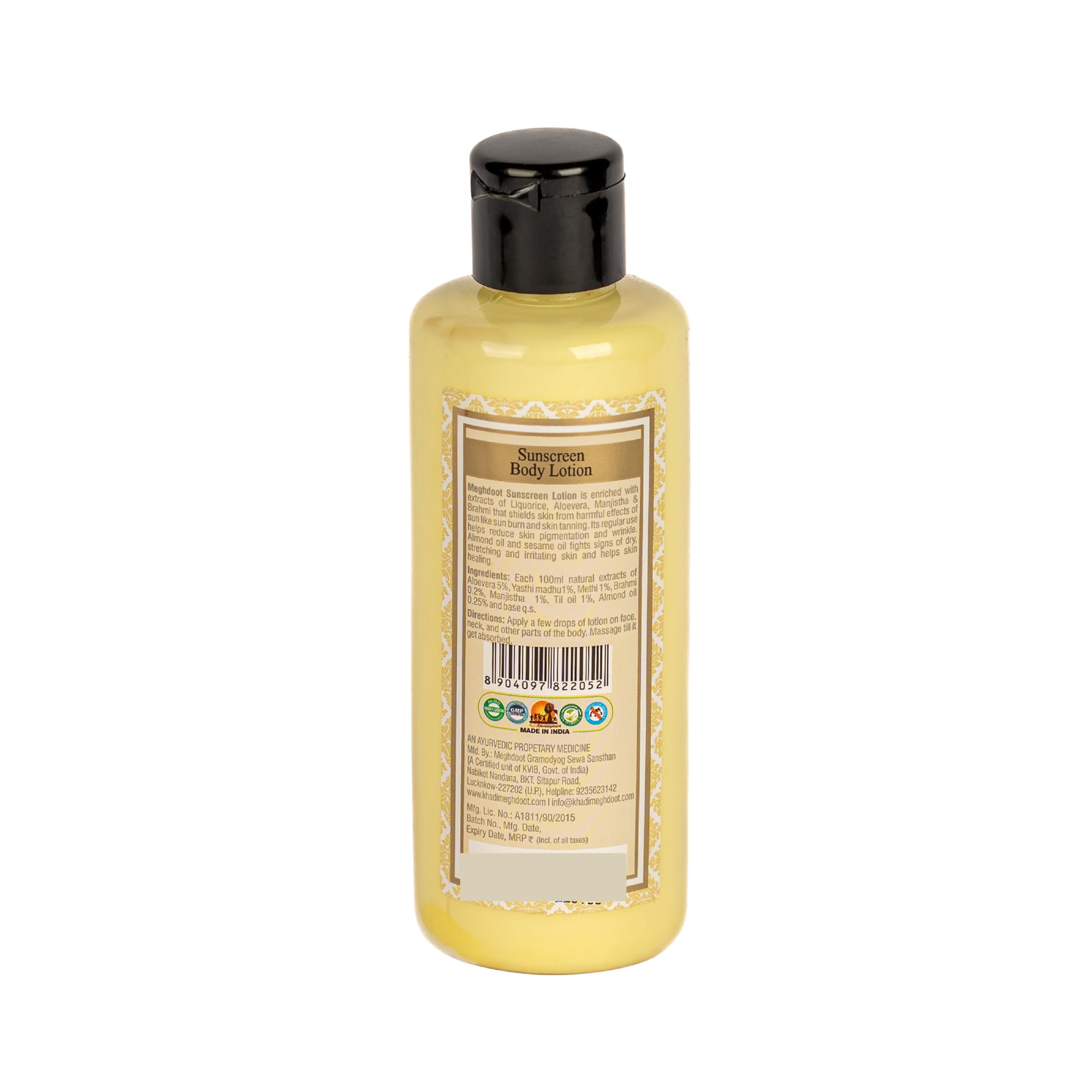 • Broad Spectrum Protection: Meghdoot Ayurvedic Sunscreen Body Lotion offers broad-spectrum protection shielding your skin from harmful sun exposure. This powerful lotion helps prevent sunburn premature aging and skin damage caused by prolonged sun exposur