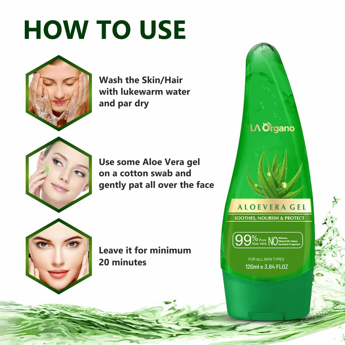 LA Organo Aloe Vera Gel For Skin Face Hair Aftershave Lotion Sunburn and Acne Relief Deeply Hydrating and Repairing (Pack of 2)