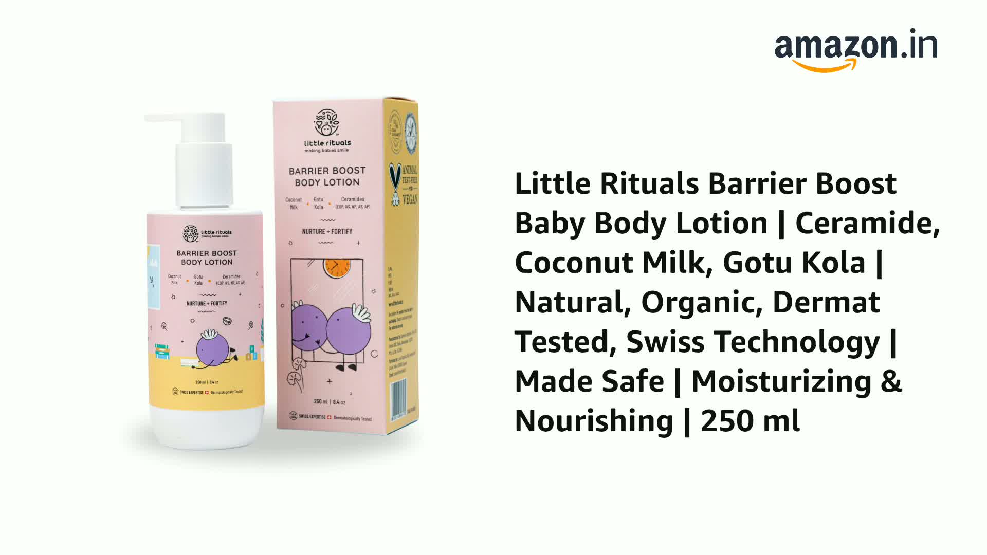 Little Rituals Barrier Boost Baby Body Lotion | Ceramide, Coconut Milk, Gotu Kola | Natural, Organic, Dermat Tested, Swiss Technology | Made Safe | Moisturizing & Nourishing | 250 ml