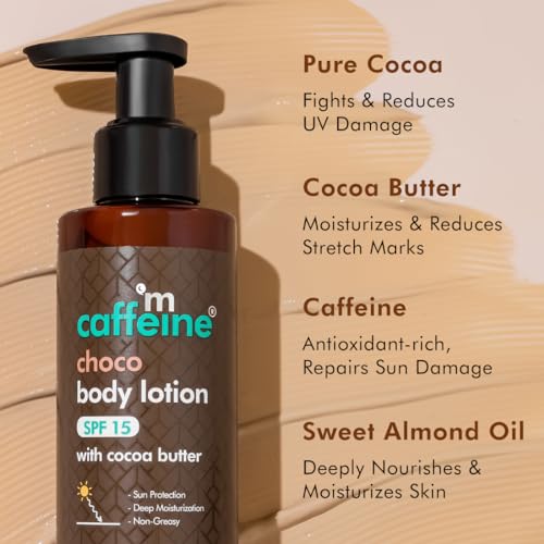 mCaffeine Deep Moisturizing Choco Body Lotion with SPF for Sun Protection | All Season Moisturizer for Body with Cocoa Butter & Shea Butter | Non-Sticky Body Lotion for Women & Men (150ml)