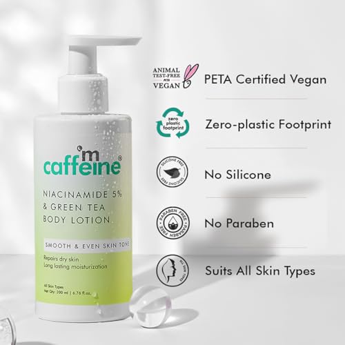 HomeBeautyBodyBody CareBody Lotions & MoisturizersmCaffeine Deep Moisturizing Green Tea & 5% Niacinamide Serum Body Lotion | All Season Moisturizer for Body with Niacinamide Serum | Non-Sticky Body Lotion for Women & Men