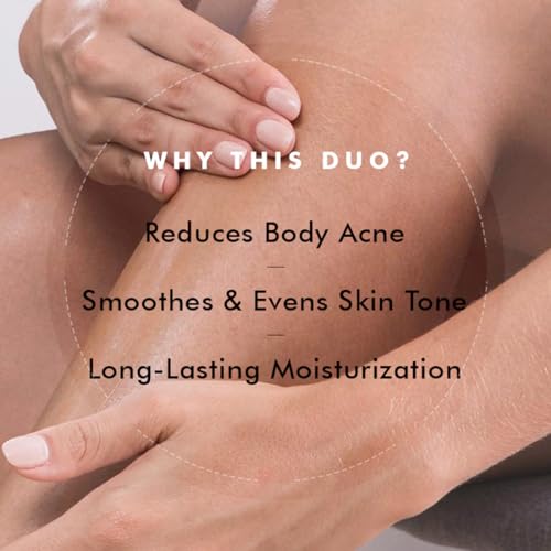 Tackle body acne & acne-marks to uncover smooth & even-toned skin with this 2-step daily body care kit which includes 1% BHA - Salicylic Acid & Green Tea Body Wash and 5% Niacinamide & Green Tea Body Lotion. The body wash in this combo helps reduce 90.53%* of acne-causing germs & gently exfoliates to improve the skins texture. The 2-in-1 formula of the serum body lotion combines the targeted action of serum & nourishment of body lotion to provide long-lasting moisturization to repair dry skin leaving it smoother brighter & more even-toned. Moreover this duo is packed with the goodness of refreshing Green Tea that soothes skin & helps reduce the appearance of acne & acne marks.