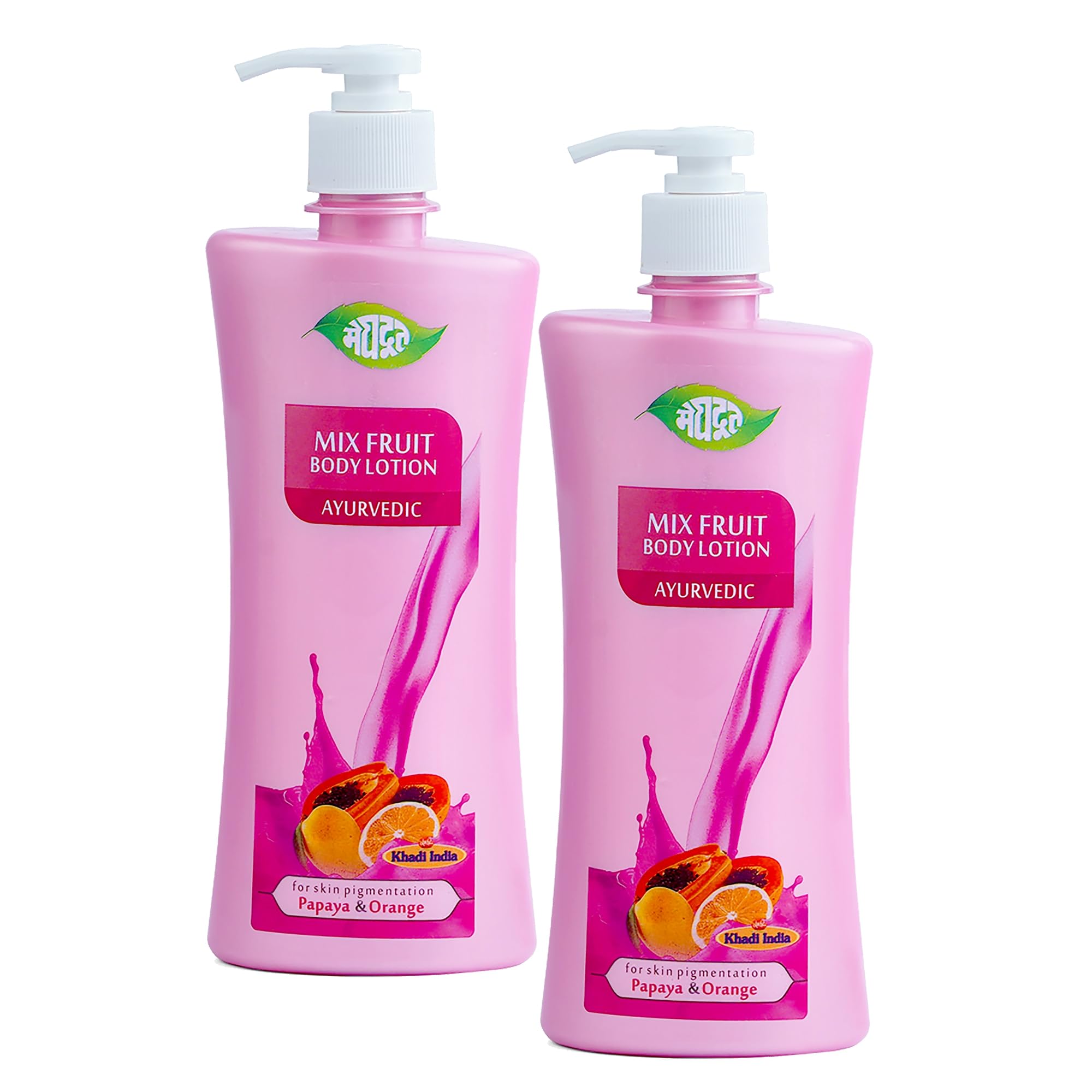 Meghdoot Natural Mix Fruit Intense Hydrating Body Lotion Enriched With Extracts of Papaya & Orange for Pigmentation and Dry Skin Soft and Glowing Skin 500ml (Pack of 2)