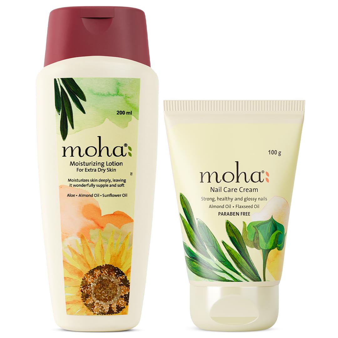 Moha Moisture Lotion 200 ml & Nail Cream 100Gm | 48H Moisturization | Refreshing Hydration | Non Sticky Feel For Men & Women