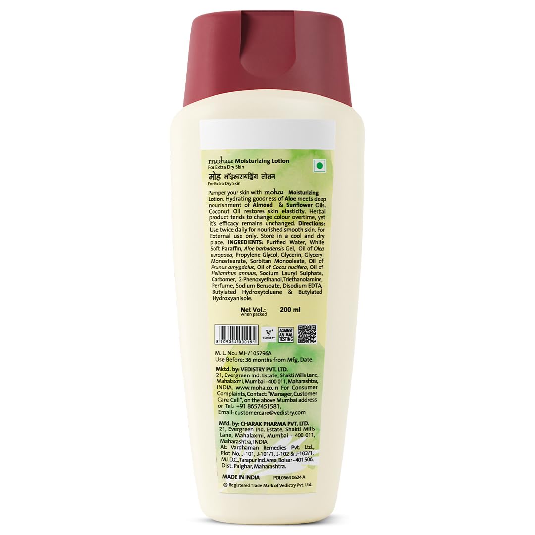 moha: Moisturizing Lotion for extra Dry Skin Deep Moisture For Face & Body With Benefit of Aloe Gel Almond Coconut & Olive Oil - 200ml (Pack of 1)