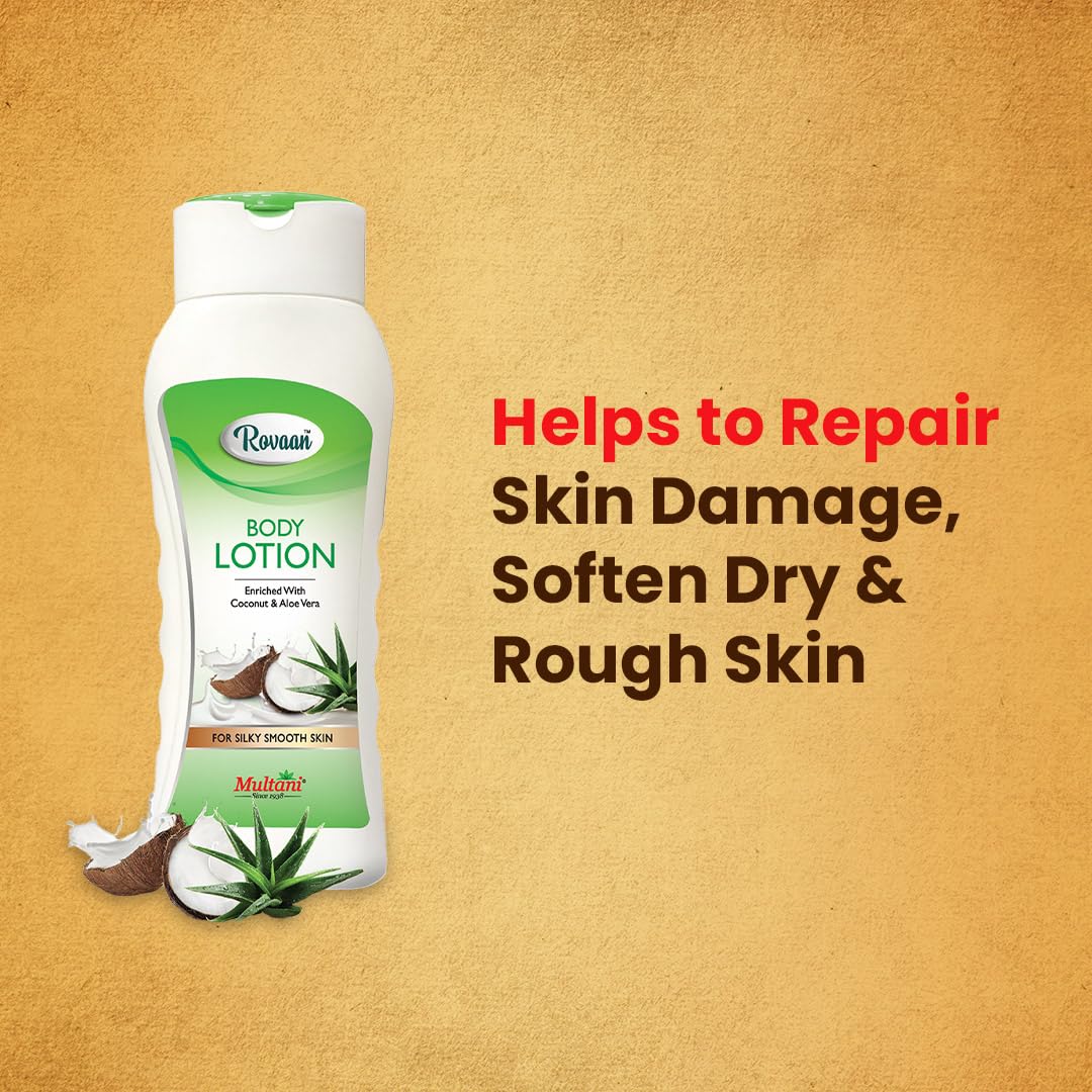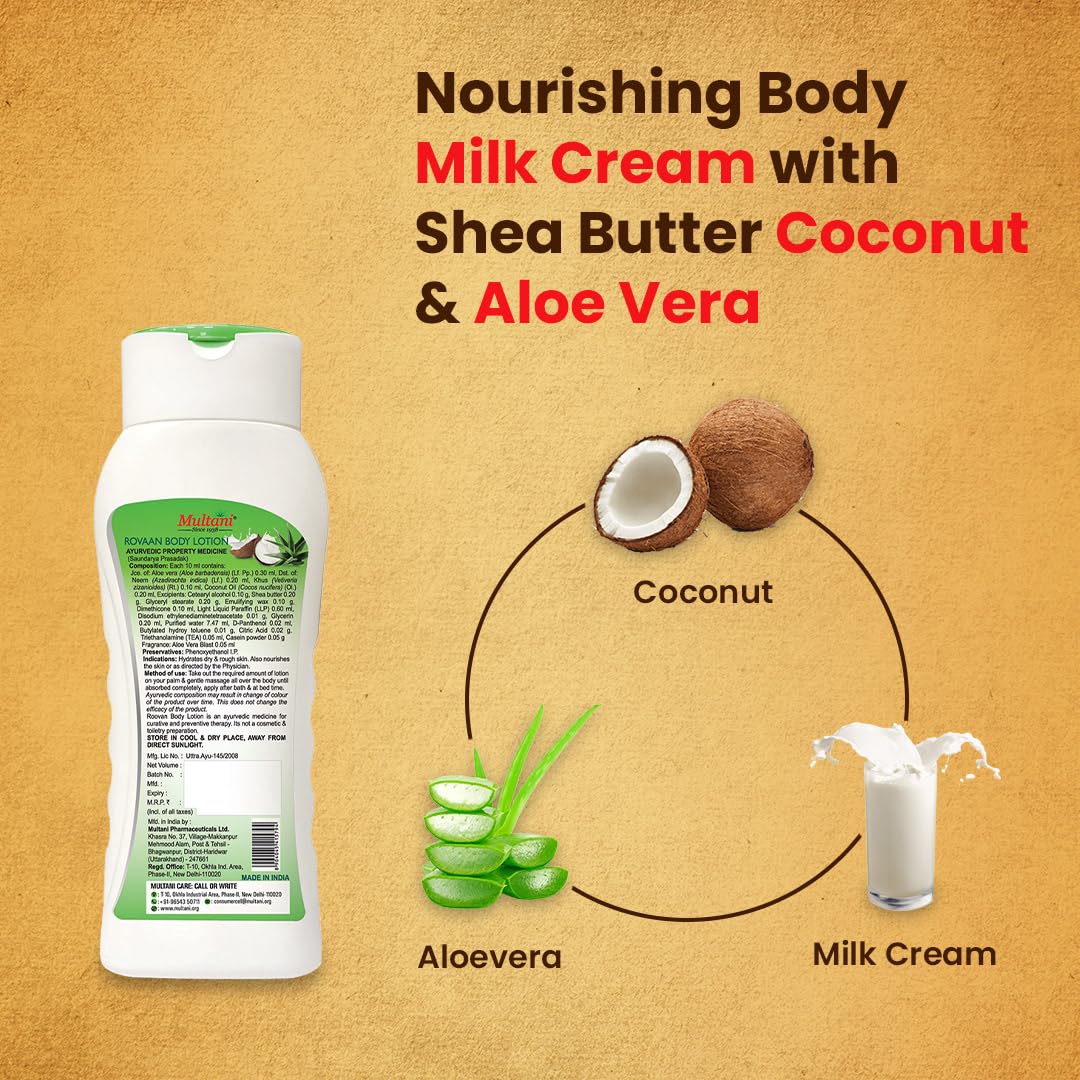 Multani Rovaan Coconut & Aloevera Body Lotion | Soft Supple & Silky Skin | Deep Moisturizer for Dry Skin | Skin Brightening Body Lotion for Summer & Winter | 200 Ml