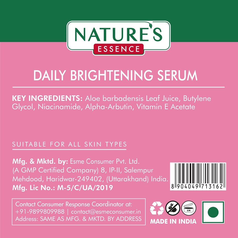NATURES ESSENCE 2% Alpha Arbutin Daily Brightening Serum Skin Brightening Face Serum For Women Face Serum For Glowing Skin 30ml