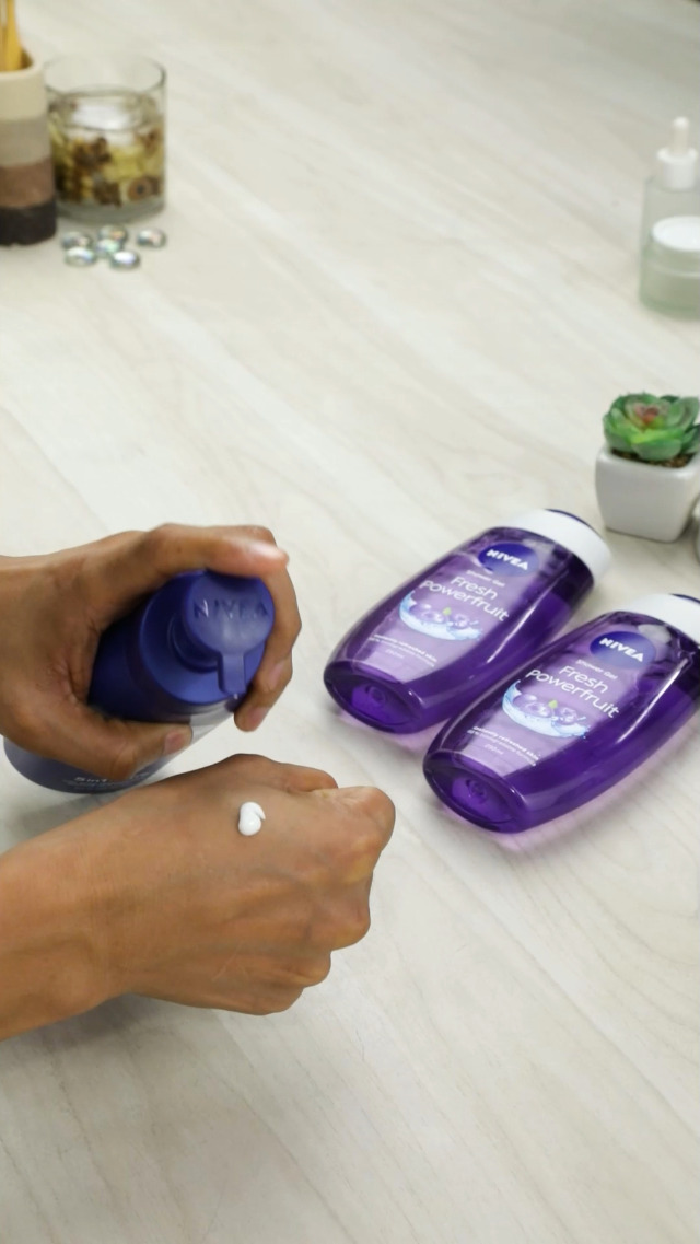 NIVEA Nourishing Body Lotion is a rich luxurious lotion that is ideal for extra dry and sensitive skin types that have lost their natural moisture. Enriched with skin softening essential almond oil and infused with deep moisture serum NIVEA Nourishing Body Lotion intensively nourishes your skin for 48hours to noticeably reduce the dryness of your skin just after one application leaving it soft smooth and well moisturized. At NIVEA weâve got a vast selection of soaps shower gels bath additives deodorants creams lotions milks and a lot more. If youâre looking for products to help improve the healthy look or glow of your skin weâve got you covered! Take a look now and discover the ideal NIVEA product for your needs and preferences. We have products for both men and women including shaving items and deodorants for all of your personal hygiene requirements. NIVEA a hundred years of skincare for life! NIVEA Fresh Powerfruit Shower Gel provides tempting freshness and pampering care for your skin under the shower. Let this fresh shower gel with antioxidants envelop your skin with a silky soft foam while its vibrant scent of blueberry stimulates your senses. The caring formula pampers your skin leaving it feeling moisturized. Discover the unique combination of freshness and rich care relax and rejuvenate with every shower. NIVEA Fresh Powerfruit Shower Gel leaves your body feeling cleansed moisturized and cared for. Provides long-lasting freshness to the skin and moisturized skin even after towel drying. NIVEA Fresh Powerfruit Shower Gel is pH skin balanced dermatologically approved and suitable for all skin types. NIVEA cares for your skin & planet that's why this shower gel is microplastic-free has 98% biodegradable formula (as per OECD or equivalent methods) and its bottle is made in 96% from recycled plastic (excluding cap).