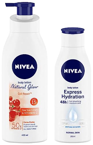 Nivea Body Lotion, Extra Whitening Cell Repair SPF 15, For All Skin Types, 400ml & Body Lotion, Express Hydration, For Normal Skin, 200ml