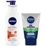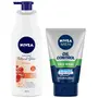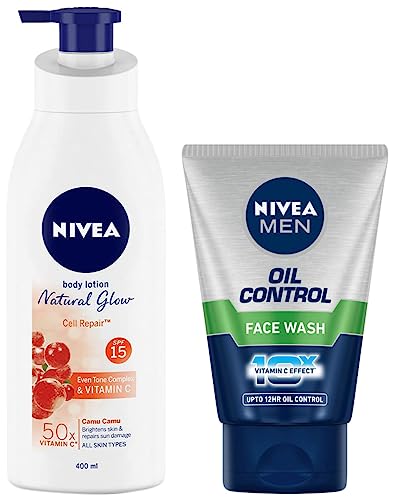 Nivea Body Lotion, Extra Whitening Cell Repair SPF 15, For All Skin Types, 400ml & Men Face Wash, Oil Control, 10x Vitamin C, 100g