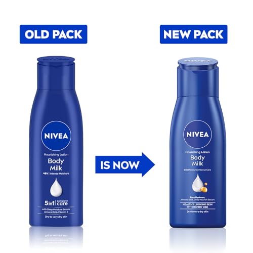 The Nivea Nourishing lotion Body Milk has 2x Almond Oil (as compared to the previous formula). It also has deep moisture serum. The Nivea deep moisture serum is unique to Nivea Body Lotions. It is the ultimate skincare secret for deep long lasting moisturisation for upto 48 hours. The lotion penetrates 3 layers into the skin*. (*3 stripping test conducted on the stratum corneam after single controlled application). The lovely subtle fragrance and rich texture is what you need to pamper your skin and leave it healthy and glowing. The Nivea Body Milk Body Lotion is good for the following skin problems: dull skin dry skin rough skin itchy skin. Who can use it: This is a body lotion for men and women. The body lotion is highly effective for winters but can be used in all seasons. It is dermatologically tested for all skin types. There are many more Nivea body lotions to choose from pick the one that you like best.