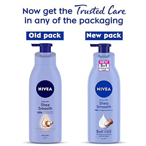 NIVEA Shea Smooth Body Lotion is a special smoothing formula that provides 48hours indulging moisture care for noticeably smoother skin just after one application. Enriched with deep moisture serum and nourishing shea butter NIVEA Shea Smooth Body Lotion delicately melts into your skin making it soft supple and comfortable. At NIVEA we've got a vast selection of soaps shower gels bath additives deodorants creams lotions milks and a lot more. If you're looking for products to help improve the healthy look or glow of your skin we've got you covered! Take a look now and discover the ideal NIVEA product for your needs and preferences. We have products for both men and women including shaving items and deodorants for all of your personal hygiene requirements. NIVEA a hundred years of skincare for life!