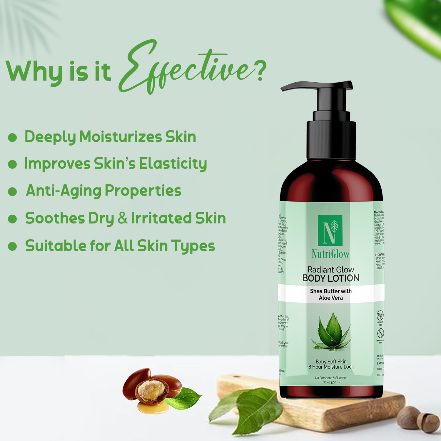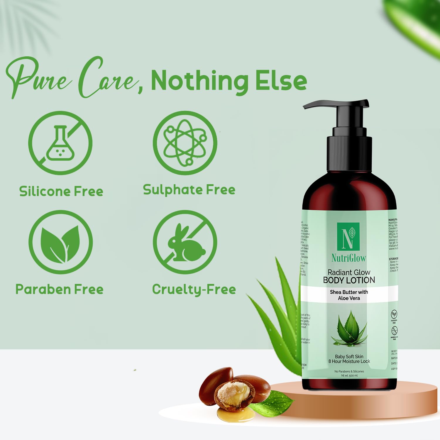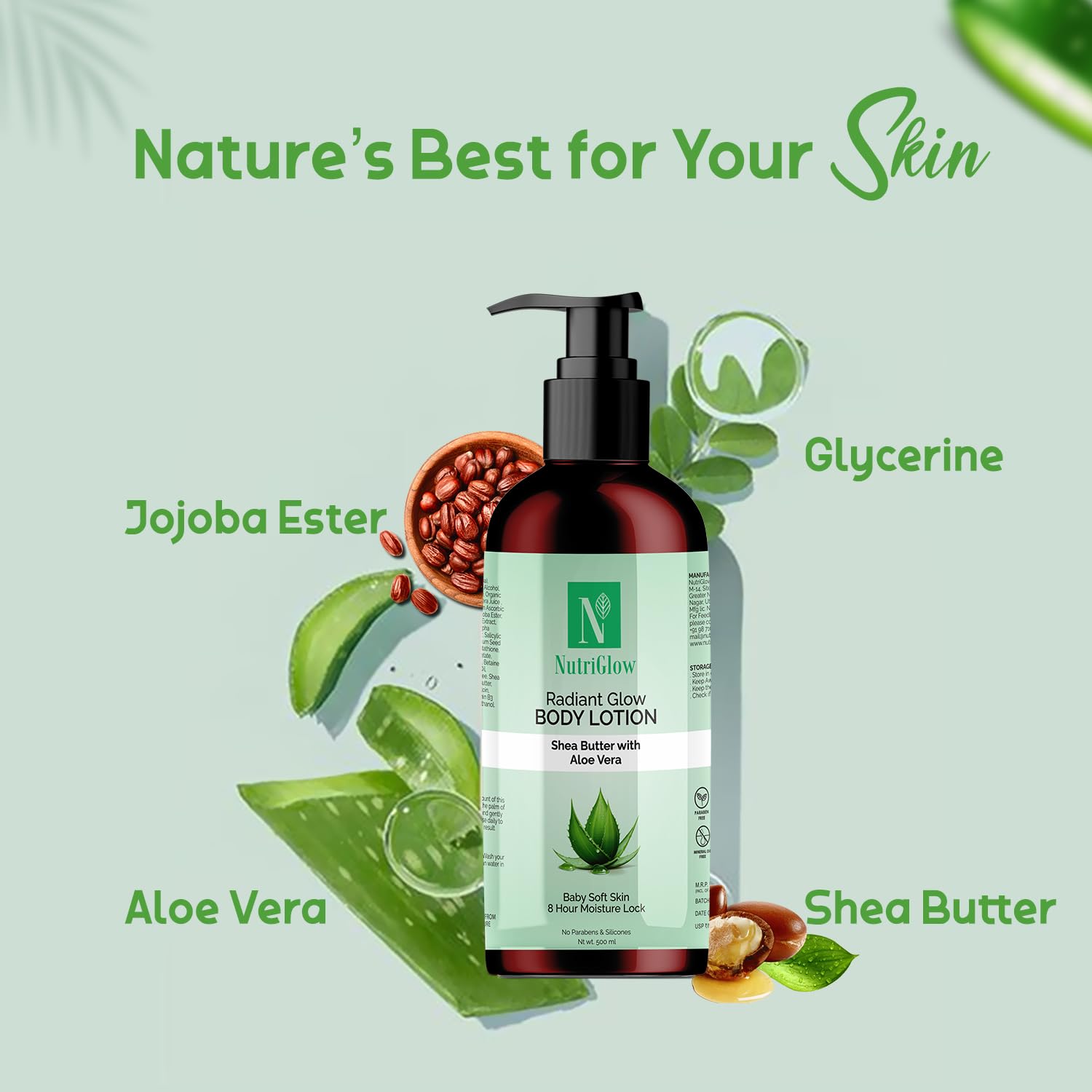 NutriGlow Radiant Glow Body Lotion Aloe Vera & Shea Butter Paraben-Free Dermatologically Tested (500ml)