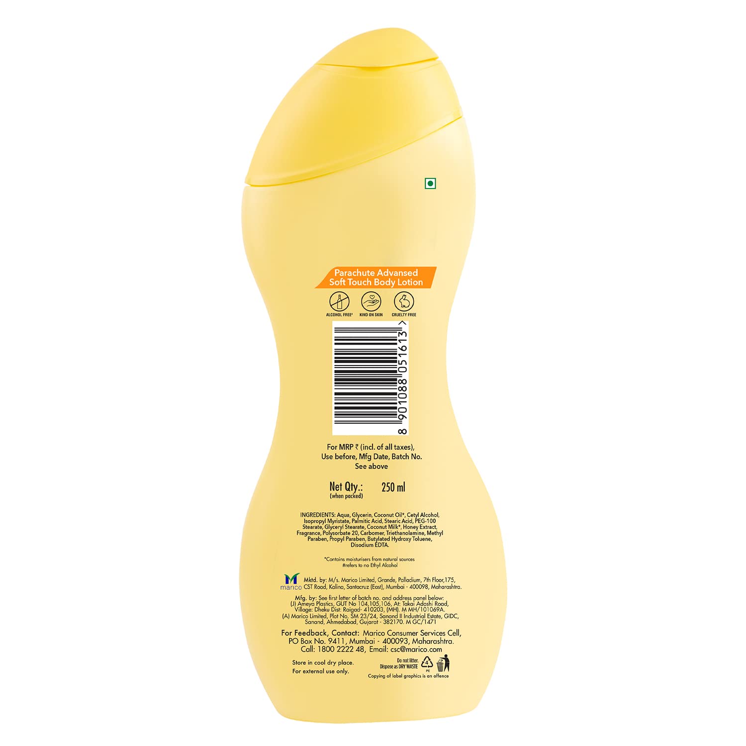 Parachute Advansed Soft Touch Body Lotion for Women & Men All Skin types 250ml | Pure Coconut Milk & Honey 100% Natural 72h Moisturisation