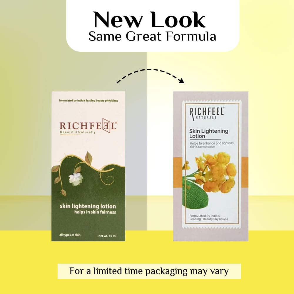 Richfeel Skin Lightening Lotion | Reduces Pigmentation & Lightens Dark Spots | Lightens Skin's Complexion | Tan Removal | Non Oily Base | 10 ml