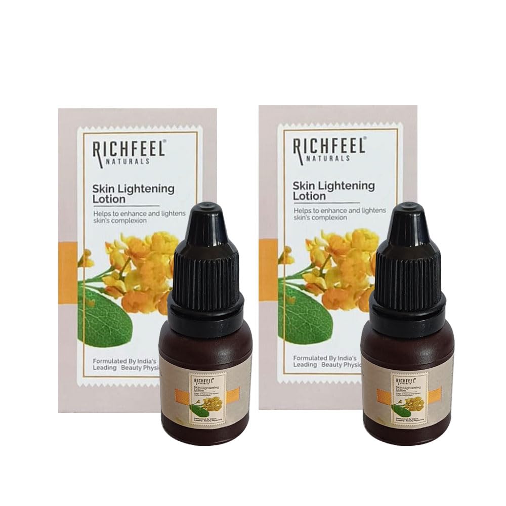 Richfeel Skin Lightening Lotion | Reduces Pigmentation & Lightens Dark Spots | Lightens Skin's Complexion | Tan Removal | Non Oily Base | 10 ml (Pack of 2)