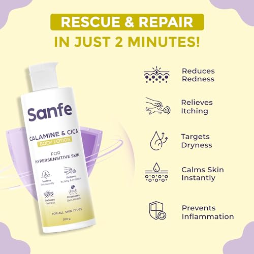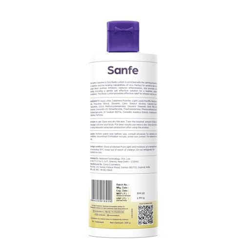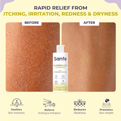 Sanfe Calamine & Cica Body Lotion | For Itching, Irritation, Redness, Dryness | Rapid Relief For Hypersensitive skin | For Men & Women - 200ml