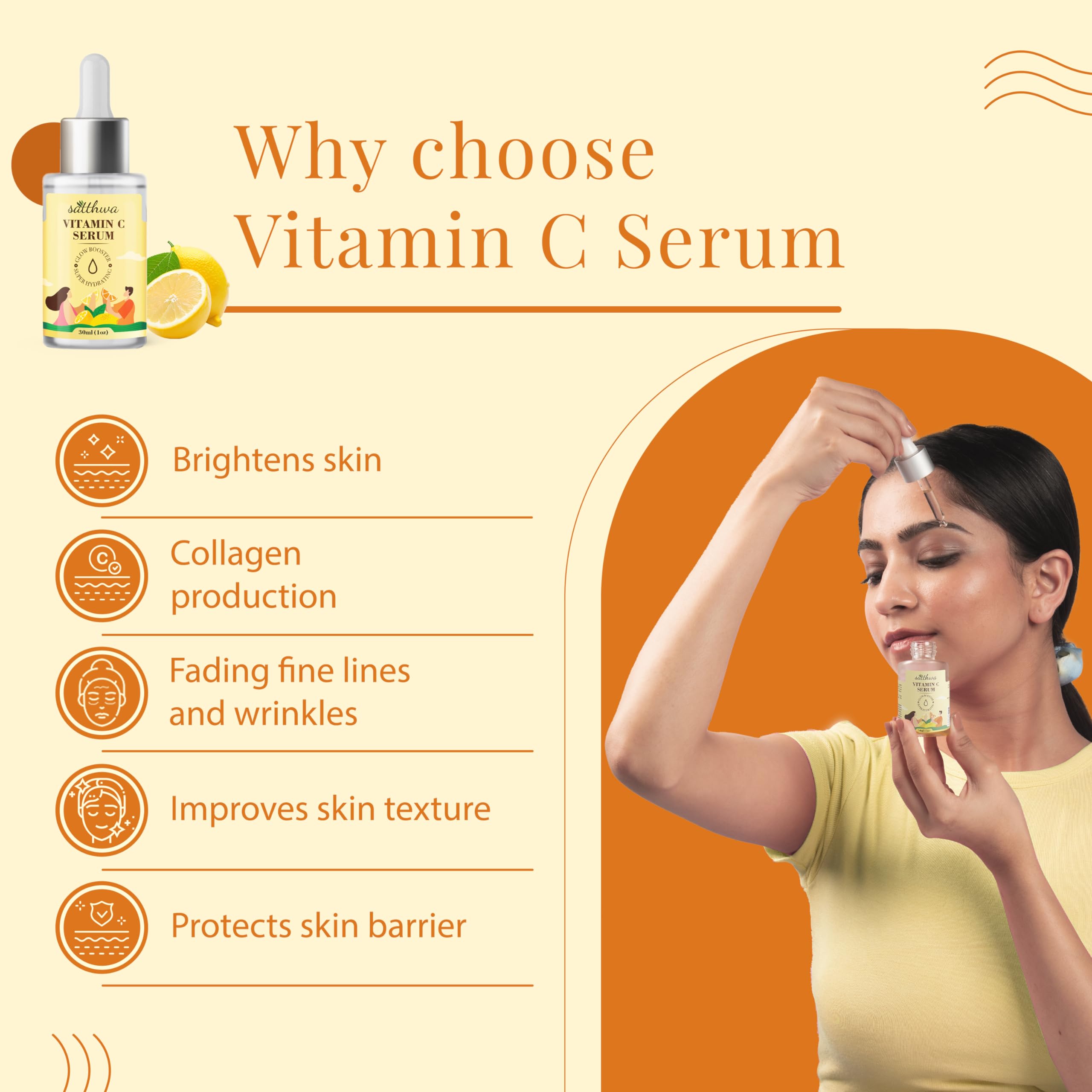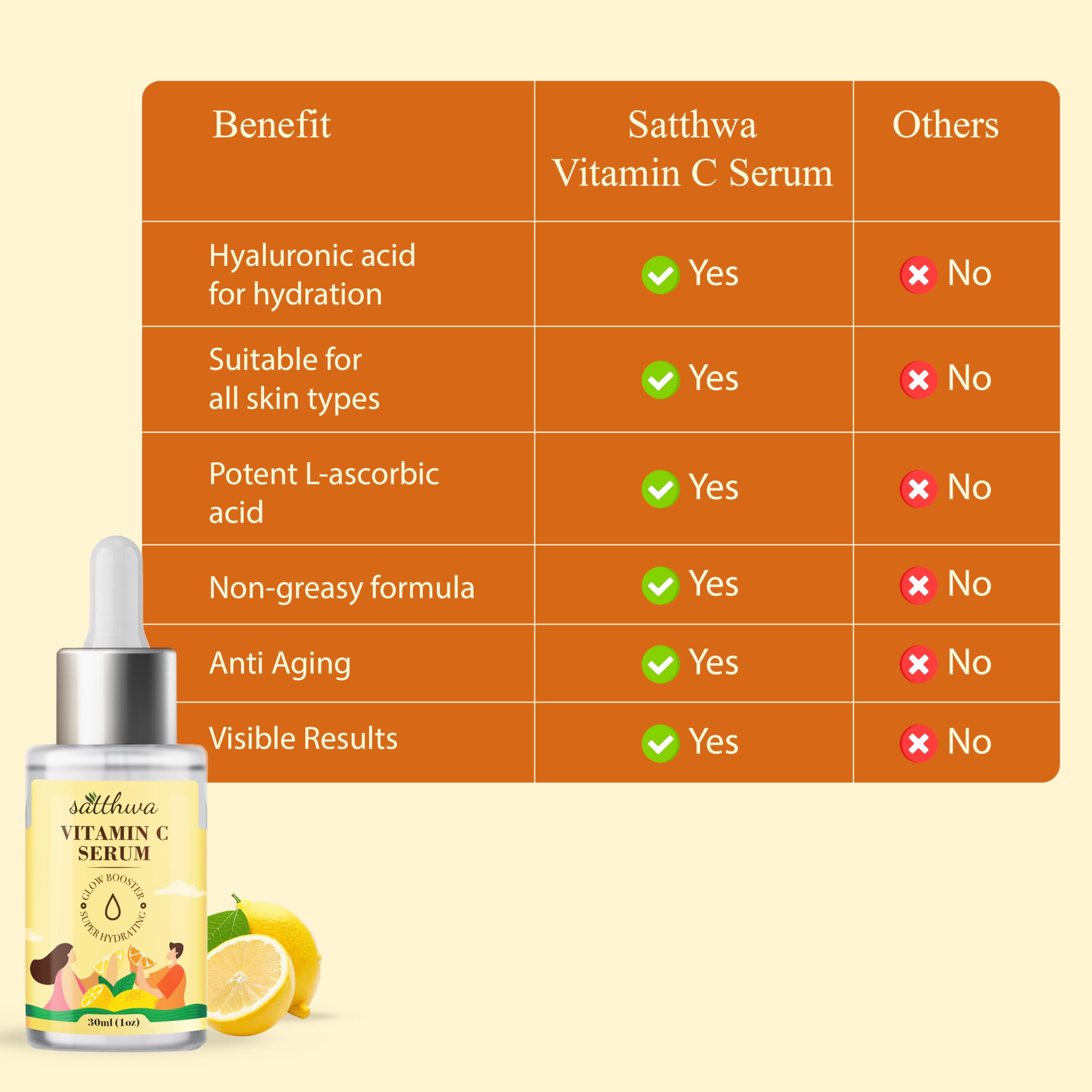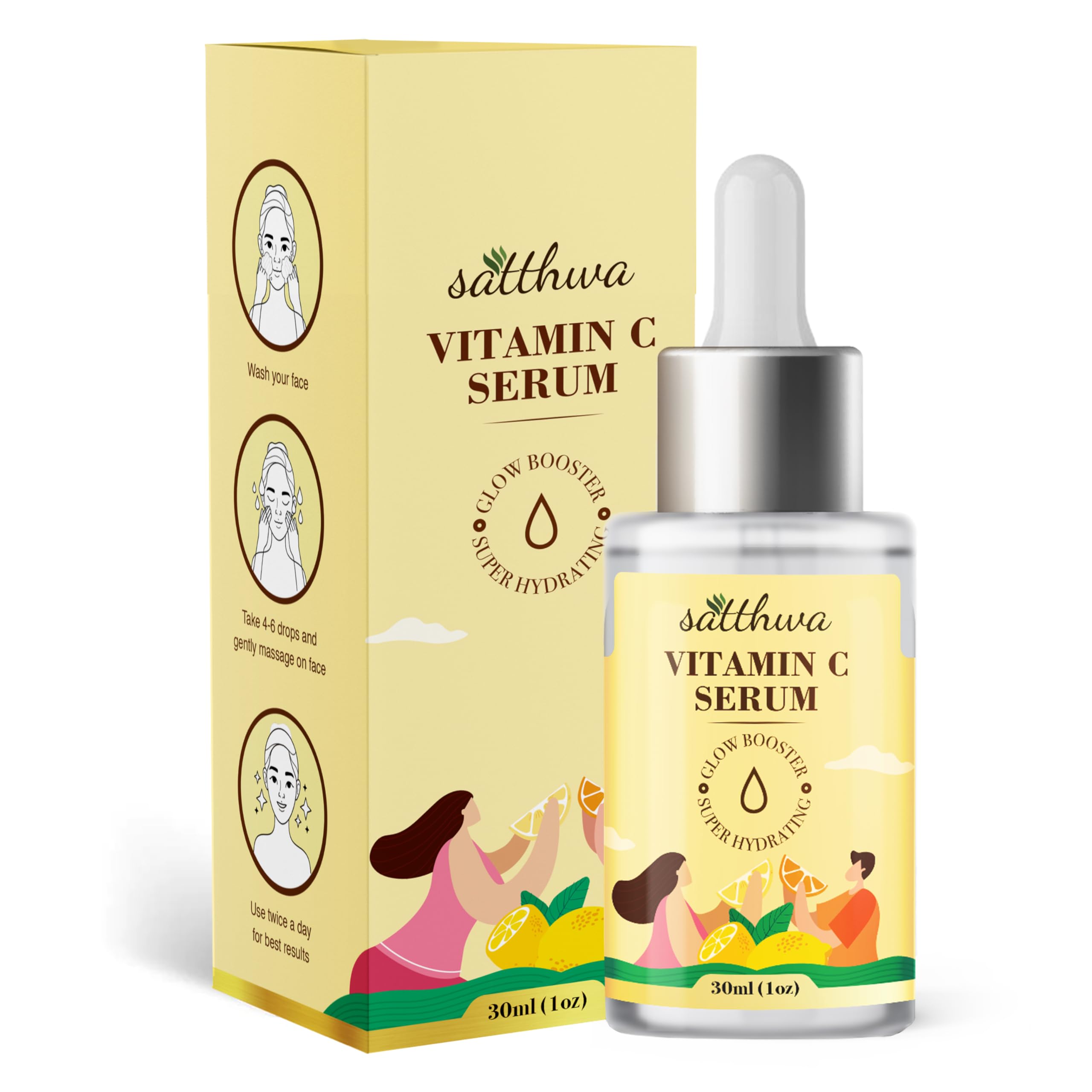 Satthwa 17% Vitamin C Face Serum with 10% Niacinamide & 3% Hyaluronic Acid for Glowing Skin | Brightening & Anti-Aging Formula | Non-Irritating Non-Sticky | For All Skin Types | 30ml