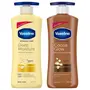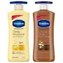 Vaseline Intensive Care 24 hr nourishing Cocoa Glow Body Lotion with Cocoa And Shea Butter Restores Glow for all skin type - 400 mlWith daily exposure to environmental triggers skinâs natural moisture barrier can break down allowing for water to escape the skin. The healing micro-droplets of Vaseline® Jelly in our lotion for dry skin locks in moisture to allow the skinâs natural barrier to recover. Smooth glowing skin can be yours with Vaseline Intensive Care Cocoa Glow Body Lotion. Your skin wonât feel oily after using this body moisturizer â the fast absorbing formula moisturizes skin but leaves it feeling soft and glowing without feeling greasy. Vaseline Intensive Care Cocoa Glow Body Lotion helps keep your skin looking healthy and Glowing. Our rich formula combines 100% pure cocoa and shea butters giving your skin a natural glow. Deep Moisturizing Daily Body Lotion Vaseline Cocoa Glow goes beyond basic moisturization. Our Intensive Care range works to helps heal* dry skin deep down**. Vaseline Intensive Care Cocoa Glow Lotion contains micro-droplets of Vaseline® Jelly that lock in moisture. Our moisturizing lotion restores the essential moisture your skin needs with a blend of nourishing ingredients and gives skin a natural healthy glow. Vaseline Intensive Care Cocoa Glow Body Lotion is also infused with cocoa butter and has a pleasant subtle fragrance. The Vaseline smart pump unlocks with just a 90Ë turn. With quick-lock technology the pump locks in the raised position after a quarter turn for easier use and no mess. *Healing by moisturization of normal dry skin. Action in the epidermal region and within cosmetic domain. **within epidermisVaseline Intensive Care Deep Moisture Nourishing Body Lotion 400 ml Daily Moisturizer for Dry Skin Gives Non-Greasy Glowing Skin - For Men & WomenEvery day your skin is exposed to damaging environmental factors like extreme temperatures low humidity harsh cleansers and hot water all that can make your skin feel dry. Thatâs why many put their trust especially during winters in Indiaâs No.1 Body Lotion - Vaseline Deep Moisture. It penetrates 5 layers deep into your skin to give you long lasting moisturisation even during harsh winters. Vaseline Deep Moisture Body Lotion is made up of a unique double-action formula containing Glycerin which helps to replenish your skinâs lost moisture and Vaseline Jelly which is known to lock the moisture in your skin. The lotion is fast absorbing for a non-greasy feel and moisturises your dry skin from the very first application. It is a daily use body lotion best for dry rough skin and is suitable for all skin types. It is ideal for when you want to get on with your day. It absorbs quickly so you can get dressed within minutes of application. With such nourishing ingredients Vaseline Deep Moisture Body Lotion gives you deep moisturisation without making your skin feel sticky and gives you soft smooth skin all day long. Based on value market share of Body Lotions for MAT July 2020. Within epidermis. Action in the epidermal region and within cosmetic domain.