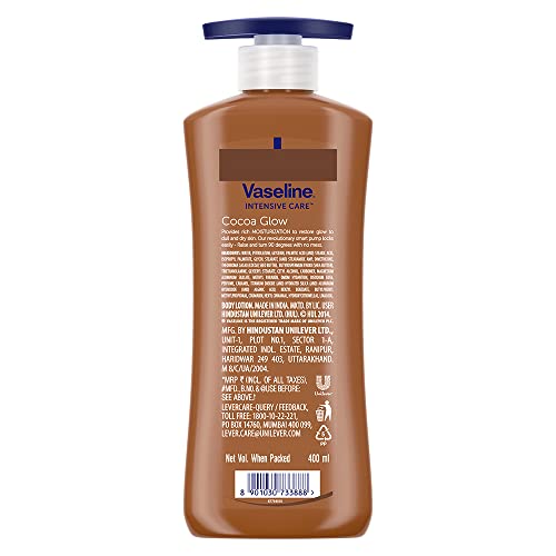 Vaseline Intensive Care Cocoa Glow Body Lotion, 24 hr nourishing lotion with 100% Cocoa And Shea Butter, Restores Glow, 400 ml (Pack of 2)